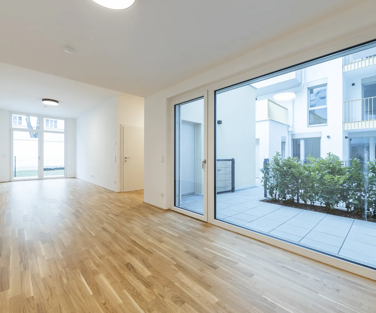 Top 4 befindet sich im Erdgeschoss, ist rein hofseitig orientiert und eignet sich perfekt als Büro in Kombination mit Wohnen. Es handelt sich um ein schlüsselfertiges Top inkl. Küchenanschlüsse.