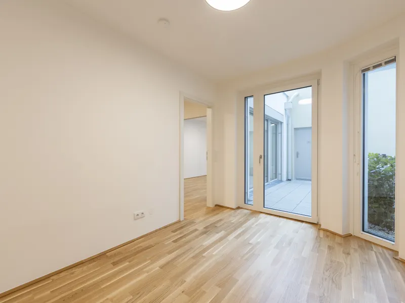 Top 4 befindet sich im Erdgeschoss, ist rein hofseitig orientiert und eignet sich perfekt als Büro in Kombination mit Wohnen. Es handelt sich um ein schlüsselfertiges Top inkl. Küchenanschlüsse.