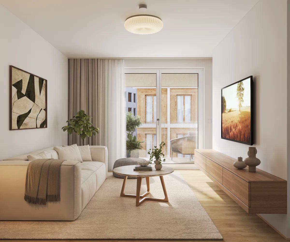 Einladende Sitzbereiche, Pergola-Überdachungen und ein wunderschöner Blick in den Park laden zum Verweilen ein. PARK FLATS vereint urbanes Wohnen und Natur auf ideale Weise – ein Ort, um das Leben in all seinen Facetten zu genießen.