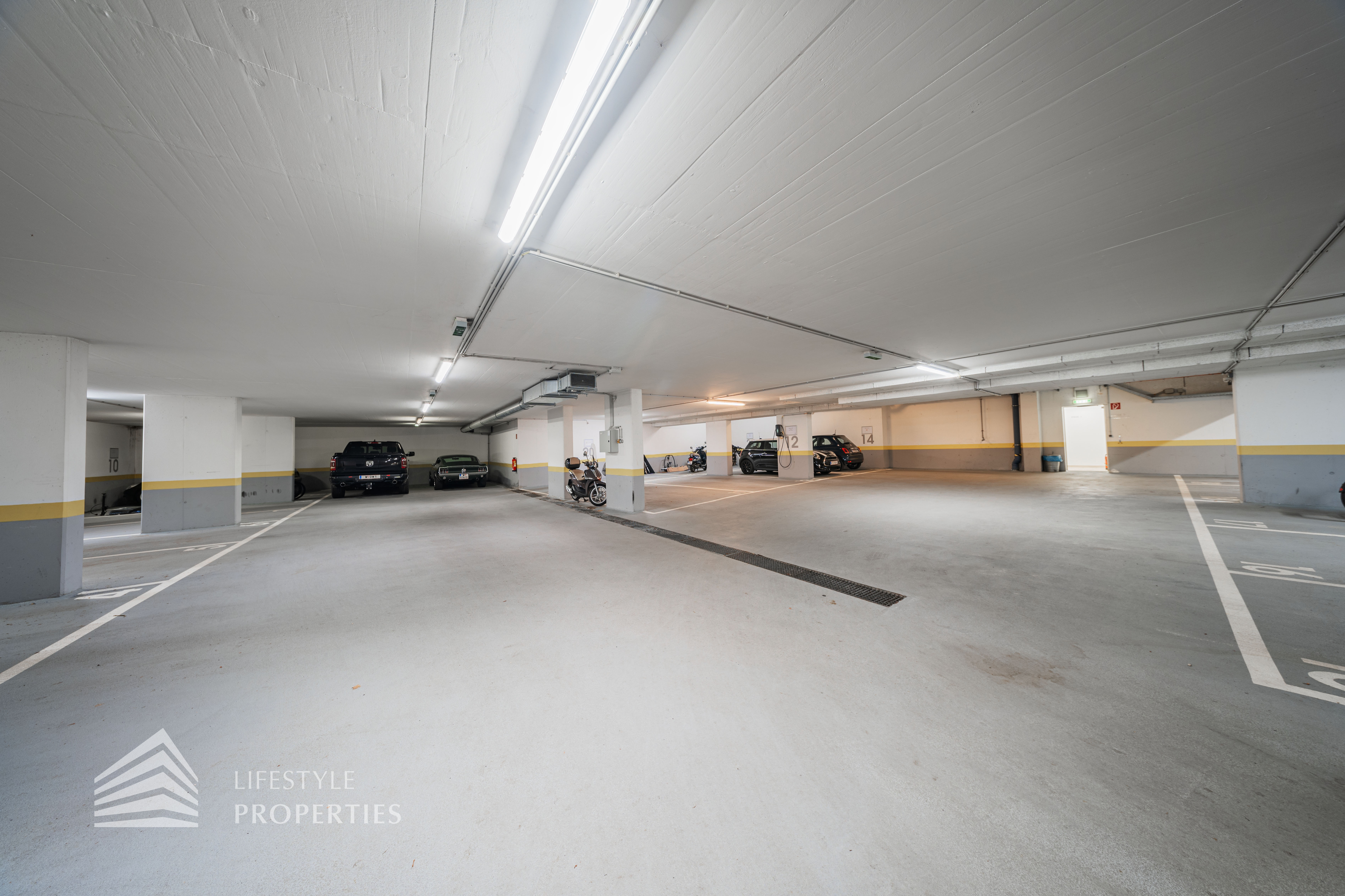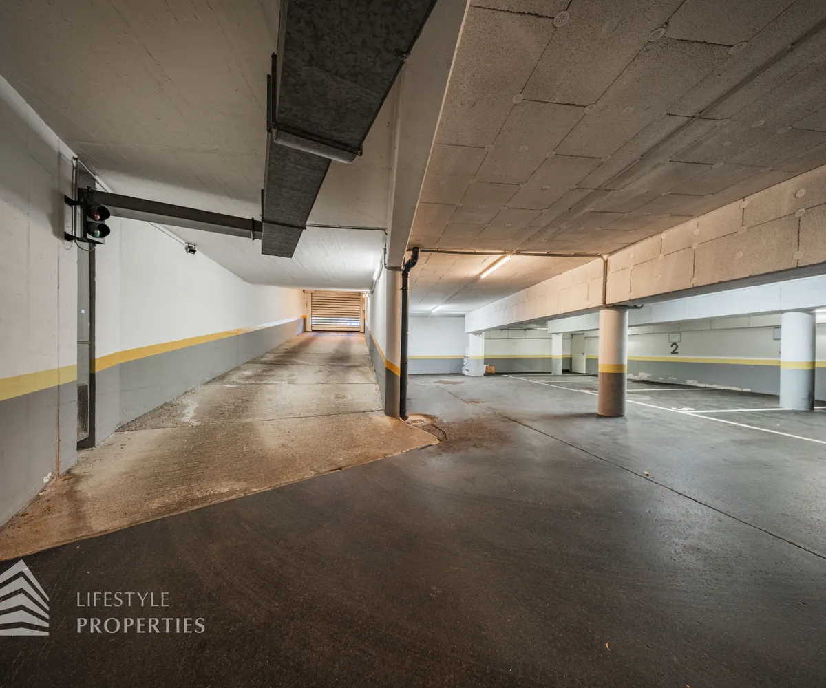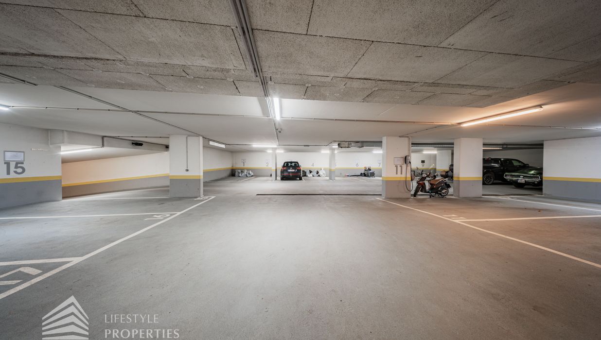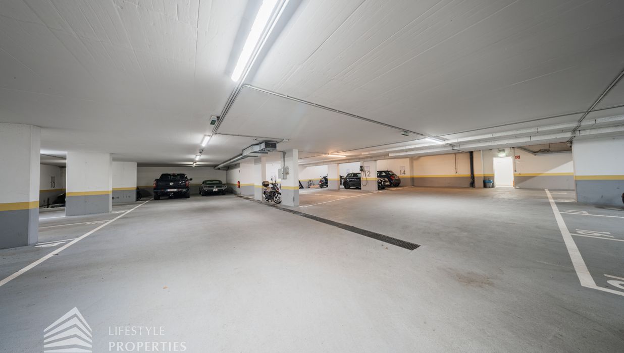 Für die Wohnungen stehen in den Tiefgaragen Parkplätze zur Verfügung zum Preis von €180,- brutto monatlich.