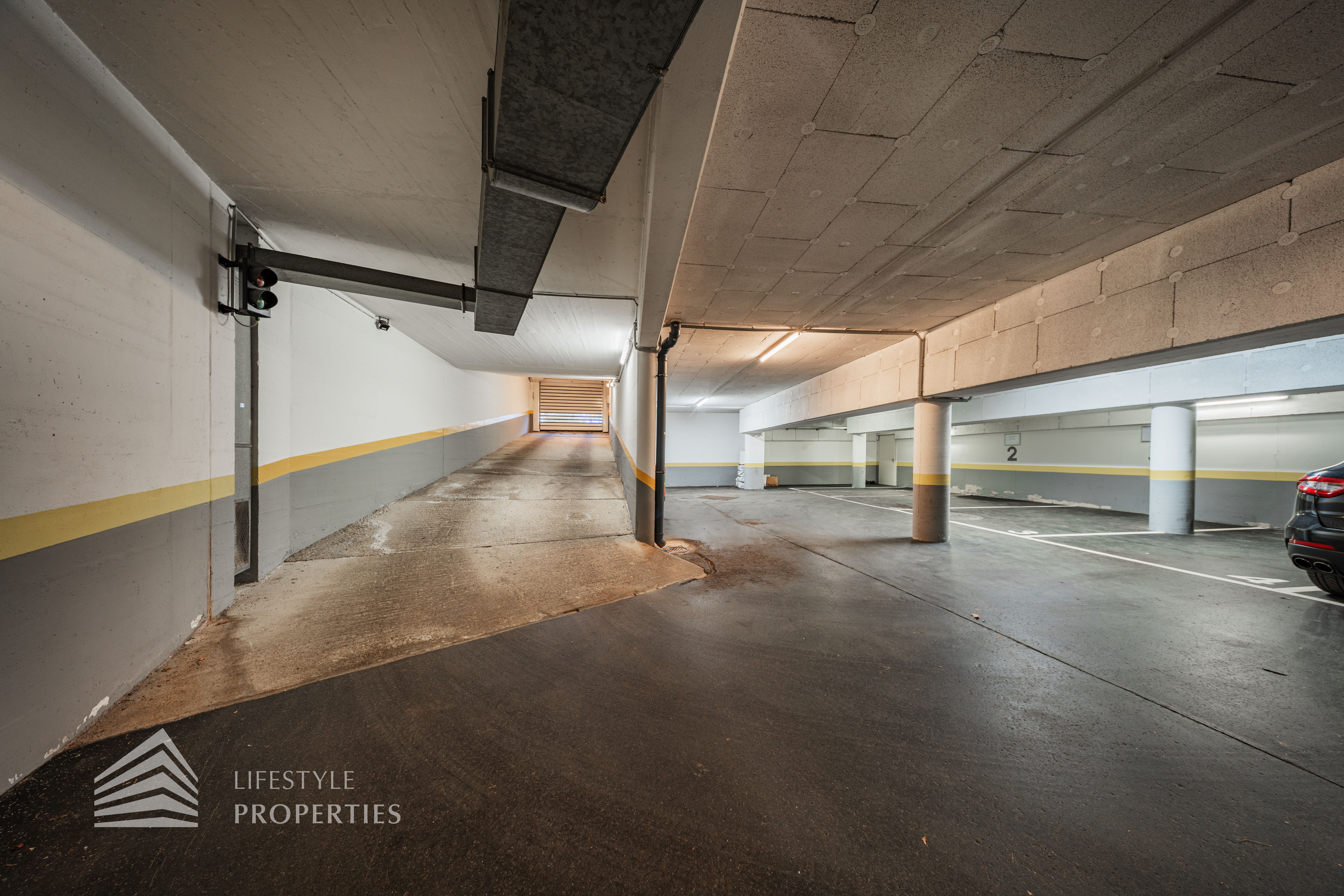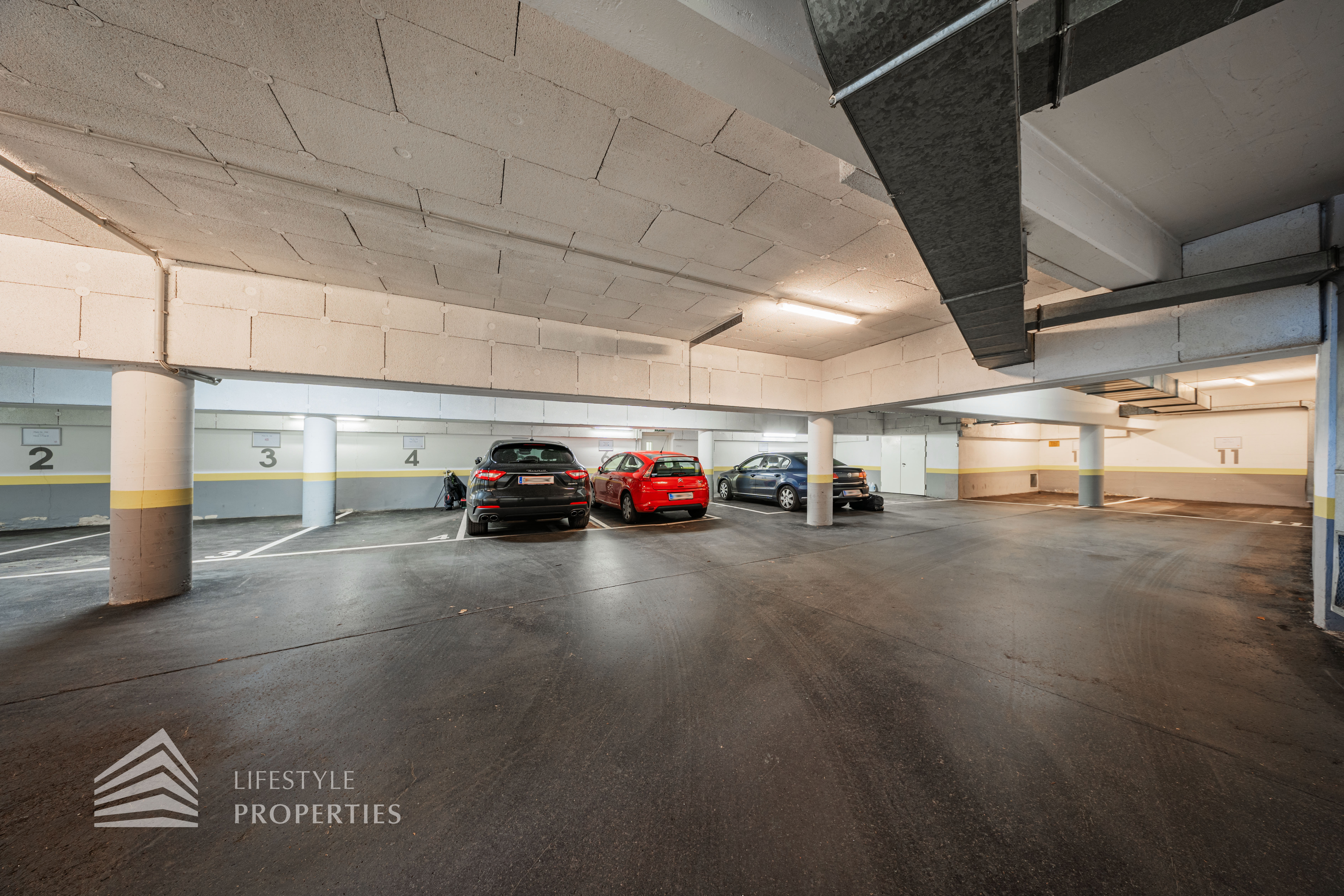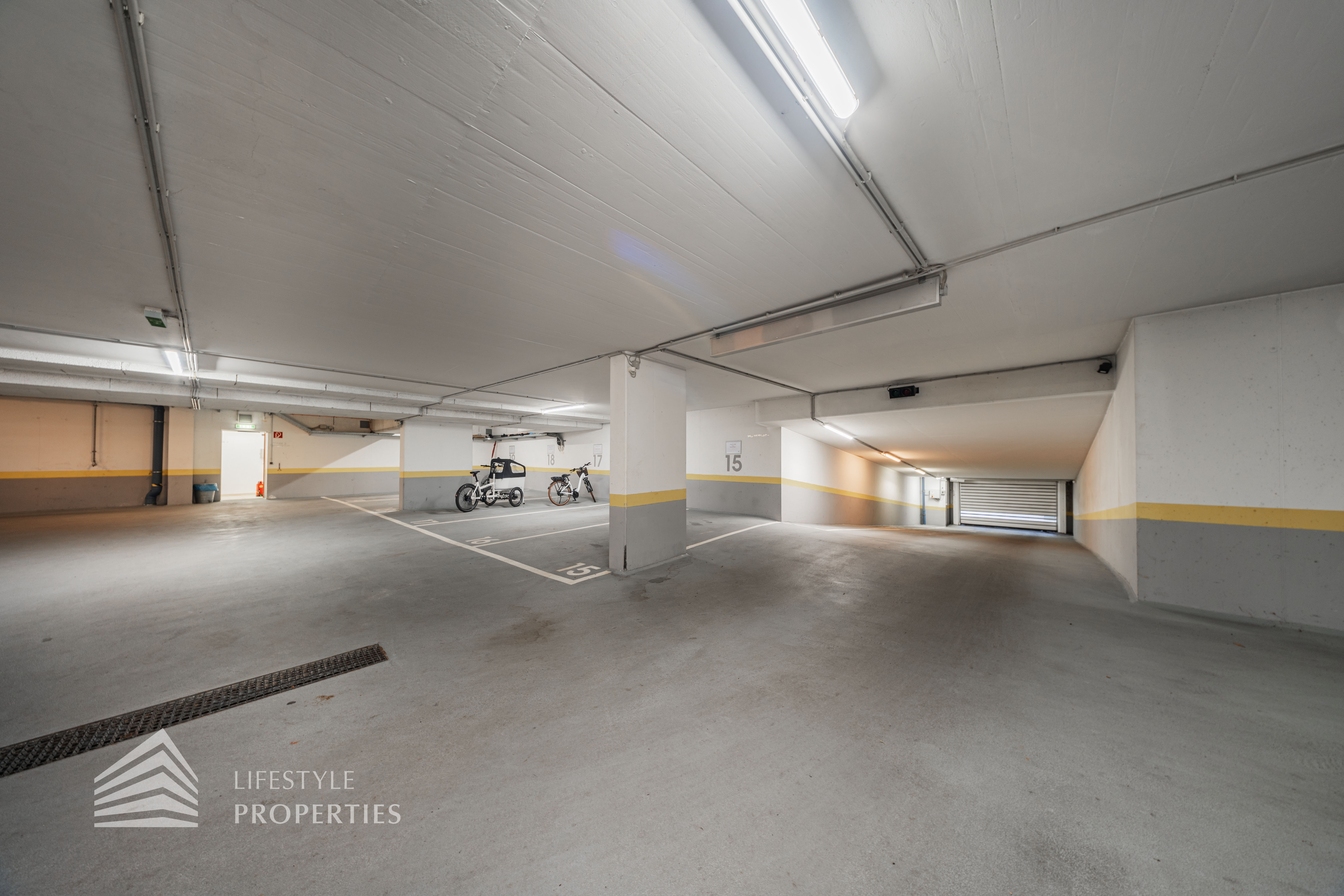 Für die Wohnungen stehen in den Tiefgaragen Parkplätze zur Verfügung zum Preis von €180,- brutto monatlich.