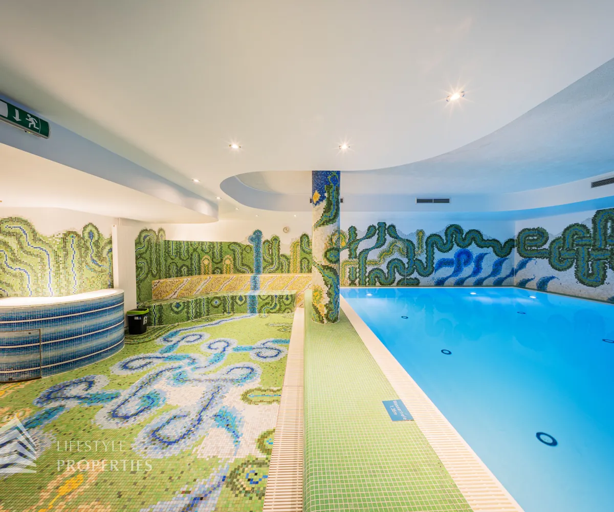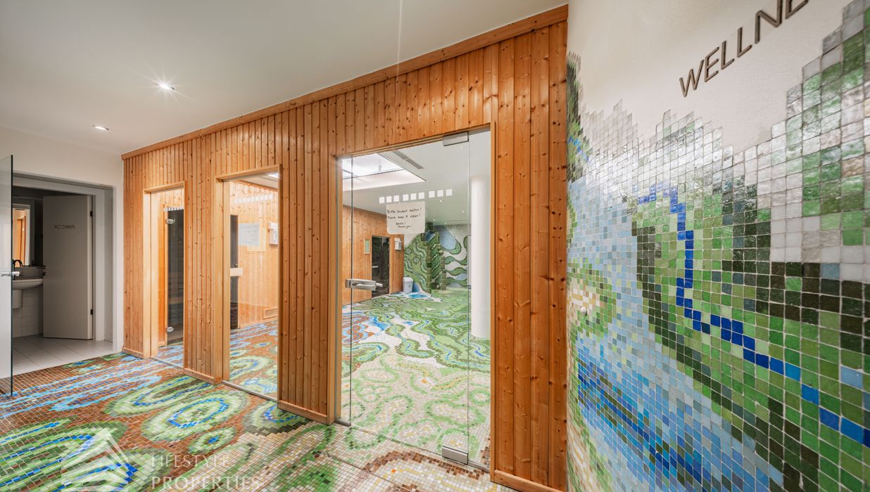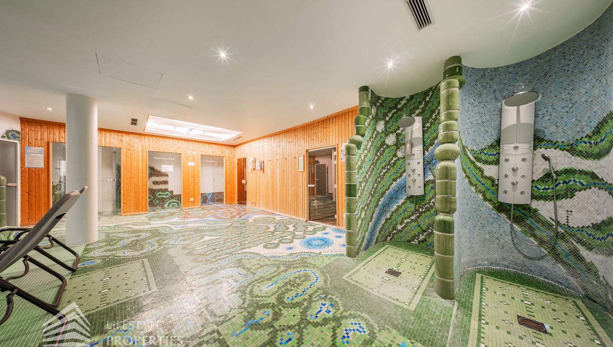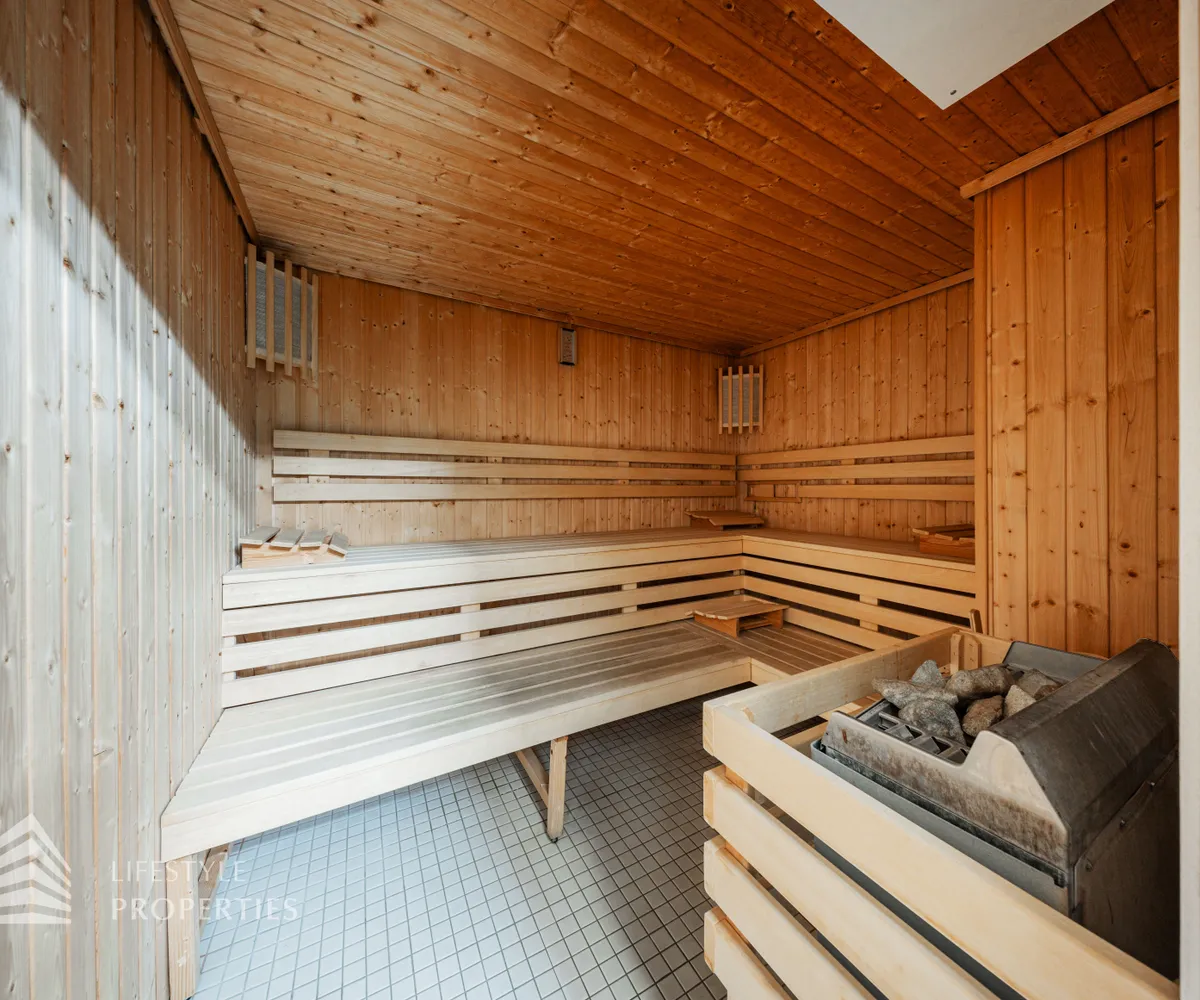 Das Wohnhaus verfügt über einen Innen- sowie Außenpool. Ergänzt wird das Angebot durch eine Sauna mit integrierter Dusche und WC. Alle Einrichtungen stehen das ganze Jahr über zur Verfügung. Ein weiteres Highlight ist der Weinkeller, der nicht nur über individuelle Weinabteile für jede Wohnung verfügt, sondern auch ideal für Feierlichkeiten genutzt werden kann. Zudem gehört ein Kamin zur Ausstattung jeder Wohnung.