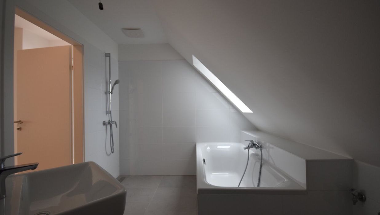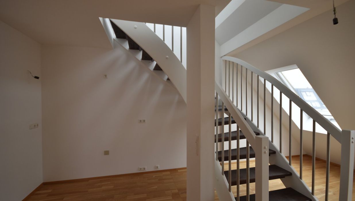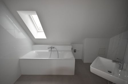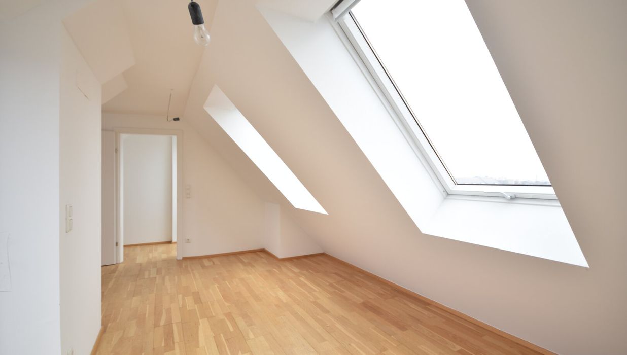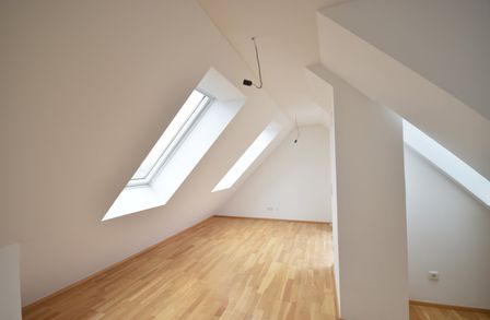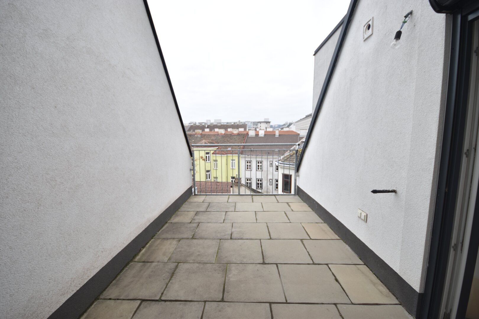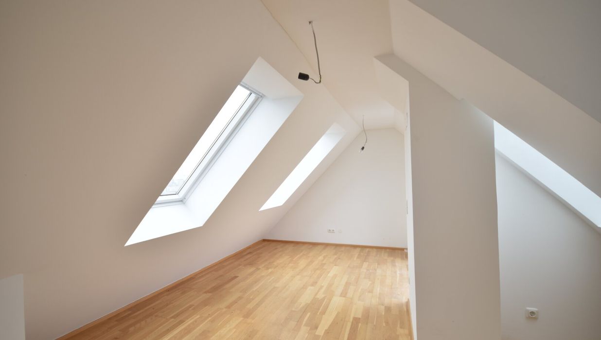 Vom Eingang aus betritt man ein kompaktes Vorzimmer, das ausreichend Platz für eine Garderobe bietet. Rechts davon befindet sich das Badezimmer, ausgestattet mit Dusche, Badewanne sowie einem Anschluss für die Waschmaschine.Links vom Vorzimmer aus gesehen gelangt man in den offenen Wohn- und Essbereich, der direkten Zugang zu einem geräumigen Balkon bietet. Hinter dem Wohn- und Essbereich, auf der rechten Seite gelegen, befindet sich das Schlafzimmer, das ebenfalls einen Zugang zu dem selben Balkon hat.im Wohn- und Essbereich führen Treppen in das obere Stockwerk. Von dort gelangt man direkt zu einem kleinen Abstellraum. Auf der linken Seite befindet sich ein mittelgroßer Raum, der sich ideal als weiteres Schlafzimmer oder als Büro mit gemütlicher Leseecke eignet. Von diesem Raum aus hat man außerdem Zugang zu einer charmanten Dachterrasse.