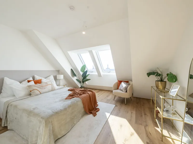 Alle vier Bautrakte bieten eine Vielzahl an Wohnungen unterschiedlicher Größe und Ausstattung, von gemütlichen Ein-Zimmer-Apartments bis hin zu geräumigen Penthouse-Wohnungen mit Terrassen und Blick auf die Stadt.