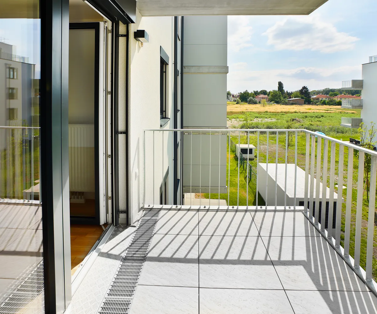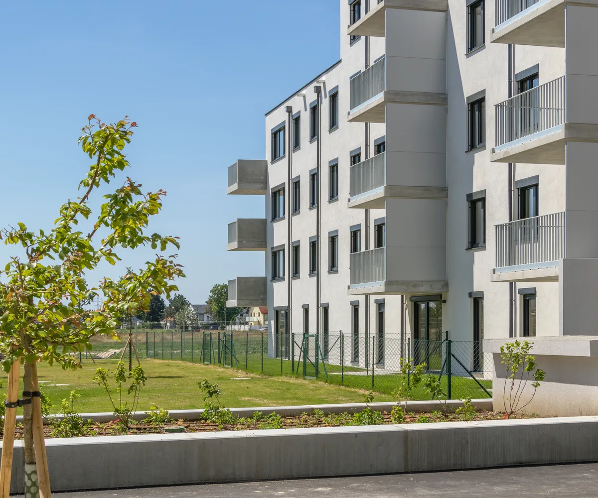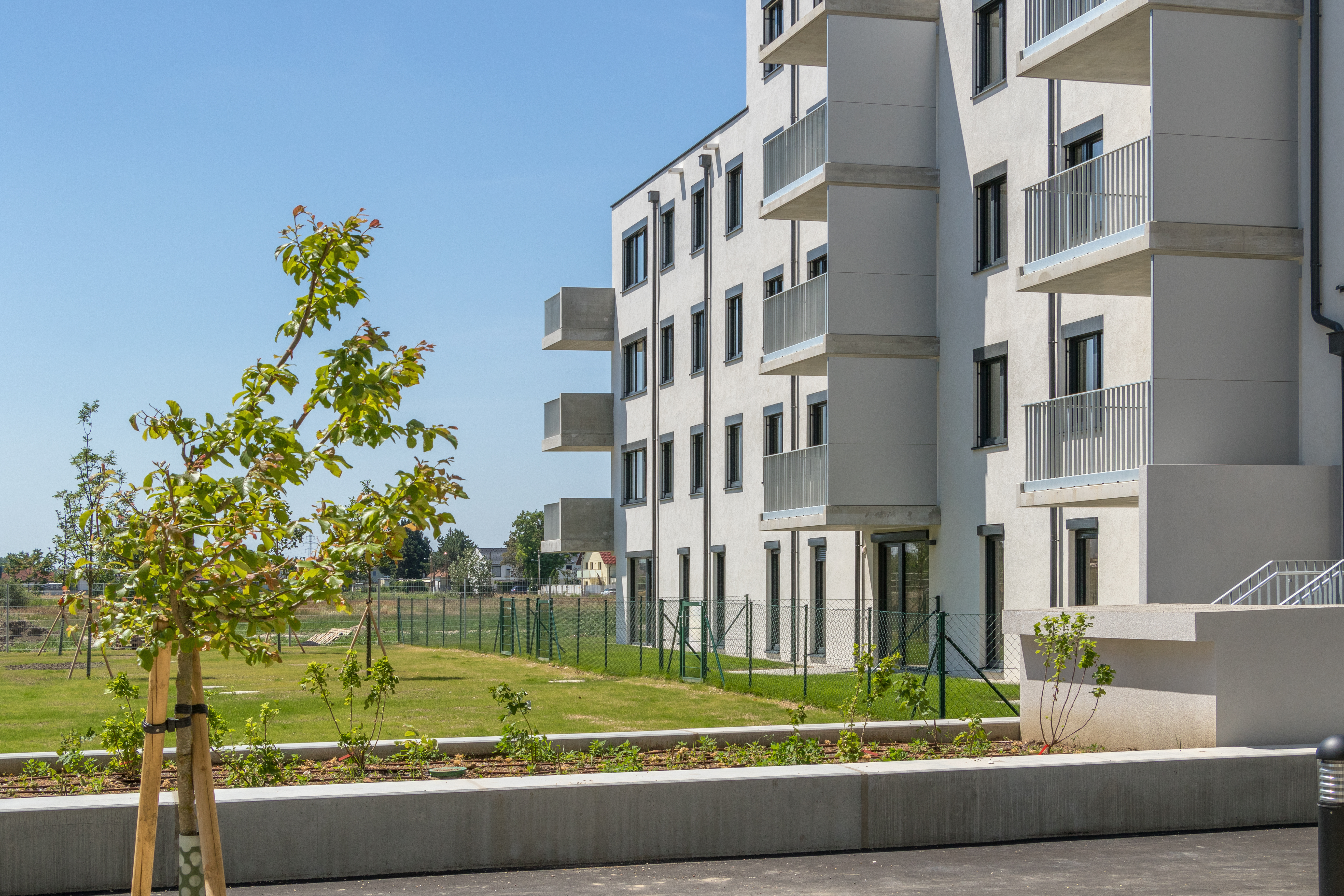 Der innovative Wohnbau fügt sich angenehm in die umliegenden Grünräume ein. Jede der 2-5 Zimmer Wohnungen bietet einen großzügigen Freibereich in Form von Terrasse, Balkon, Loggia oder Eigengarten, welcher zum Verweilen und Träumen unter freiem Himmel einlädt. Der Komfort hat höchste Priorität und es wird mit den gut durchdachten Grundrissen ein Lebensraum geschaffen.