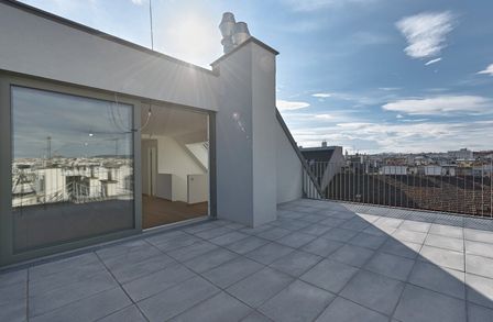 Die anschließende Terrasse mit 27,5 m2 ist ein wahrer Hingucker! Die uneinsehbare Terrasse mit schöner Bodenbefliesung und freier Sicht direkt auf den Stephansdom, verleiht ihrem neuen Domizil Extrapunkte. Hier werden Sie entspannte Stunden verbringen und Ihren Lieblingsblumen ein neues Zuhause schenken.