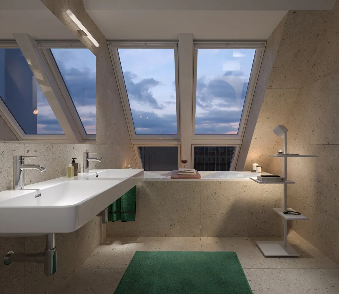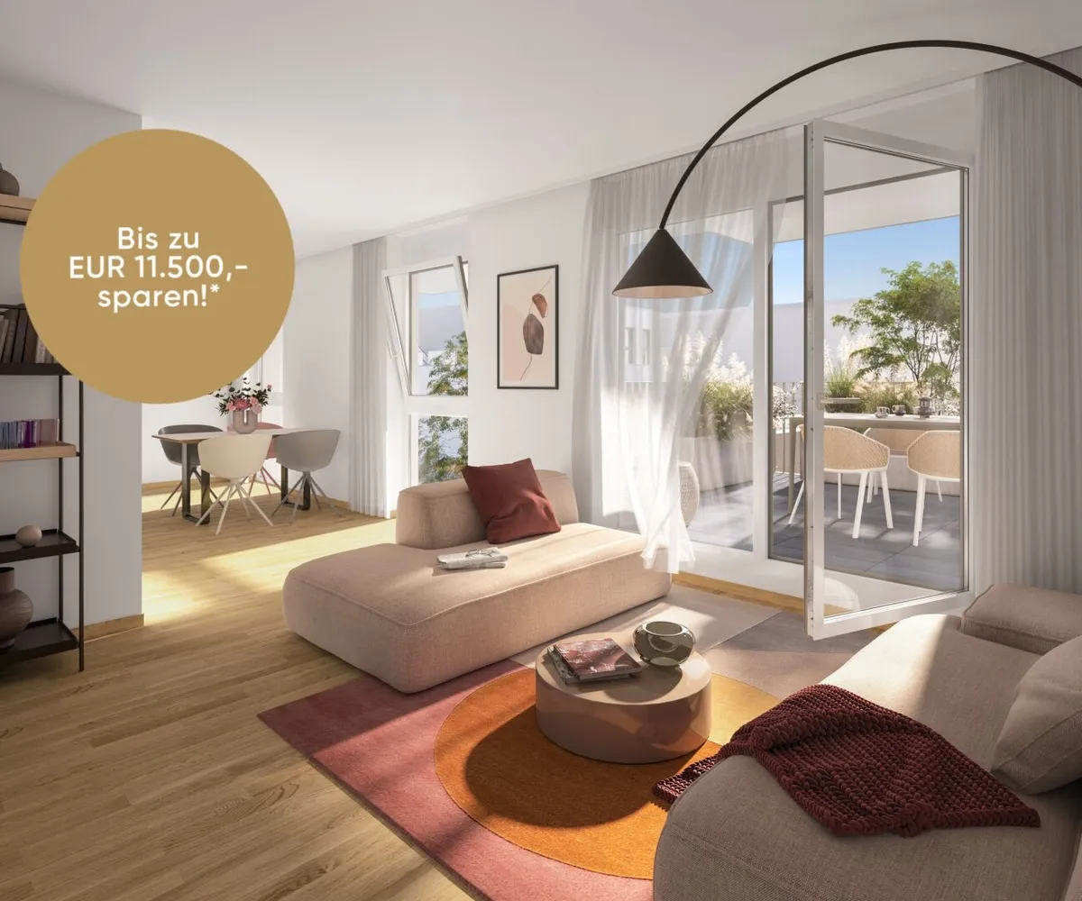 Die sorgfältig geplanten Eigentumswohnungen und Townhouses bieten mit ihren vielfältigen Grundrissen und Wohnungsgrößen für jede Lebensphase die ideale Wohnlösung. Ein behagliches Wohnambiente erzeugen die edlen Eichenparkettböden sowie die hochwertige Sanitärausstattung in den Bädern. Die Raumtemperatur lässt sich bequem über die Fußbodenheizung, die durch Fernwärme betrieben wird, sowie über die elektrisch bedienbaren Raffstores oder Rollläden regulieren. In den Dachgeschosswohnungen sorgen zusätzlich installierte Klimaanlagen dafür, dass es auch im Sommer angenehm kühl bleibt. Jede Wohneinheit verfügt über eine eigene private Freifläche, die die Wohnräume nach außen erweitert und einen idealen Rückzugsort für Erholung und Entspannung bietet.