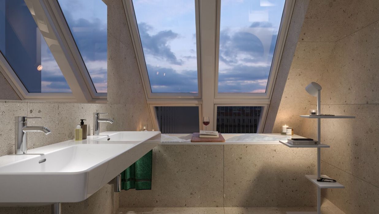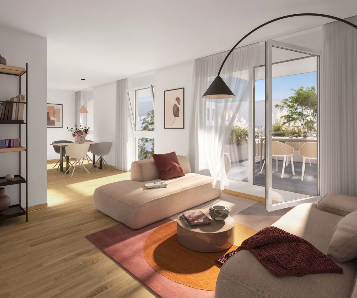 Die sorgfältig geplanten Eigentumswohnungen und Townhouses bieten mit ihren vielfältigen Grundrissen und Wohnungsgrößen für jede Lebensphase die ideale Wohnlösung. Ein behagliches Wohnambiente erzeugen die edlen Eichenparkettböden sowie die hochwertige Sanitärausstattung in den Bädern. Die Raumtemperatur lässt sich bequem über die Fußbodenheizung, die durch Fernwärme betrieben wird, sowie über die elektrisch bedienbaren Raffstores oder Rollläden regulieren. In den Dachgeschosswohnungen sorgen zusätzlich installierte Klimaanlagen dafür, dass es auch im Sommer angenehm kühl bleibt. Jede Wohneinheit verfügt über eine eigene private Freifläche, die die Wohnräume nach außen erweitert und einen idealen Rückzugsort für Erholung und Entspannung bietet.