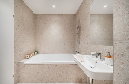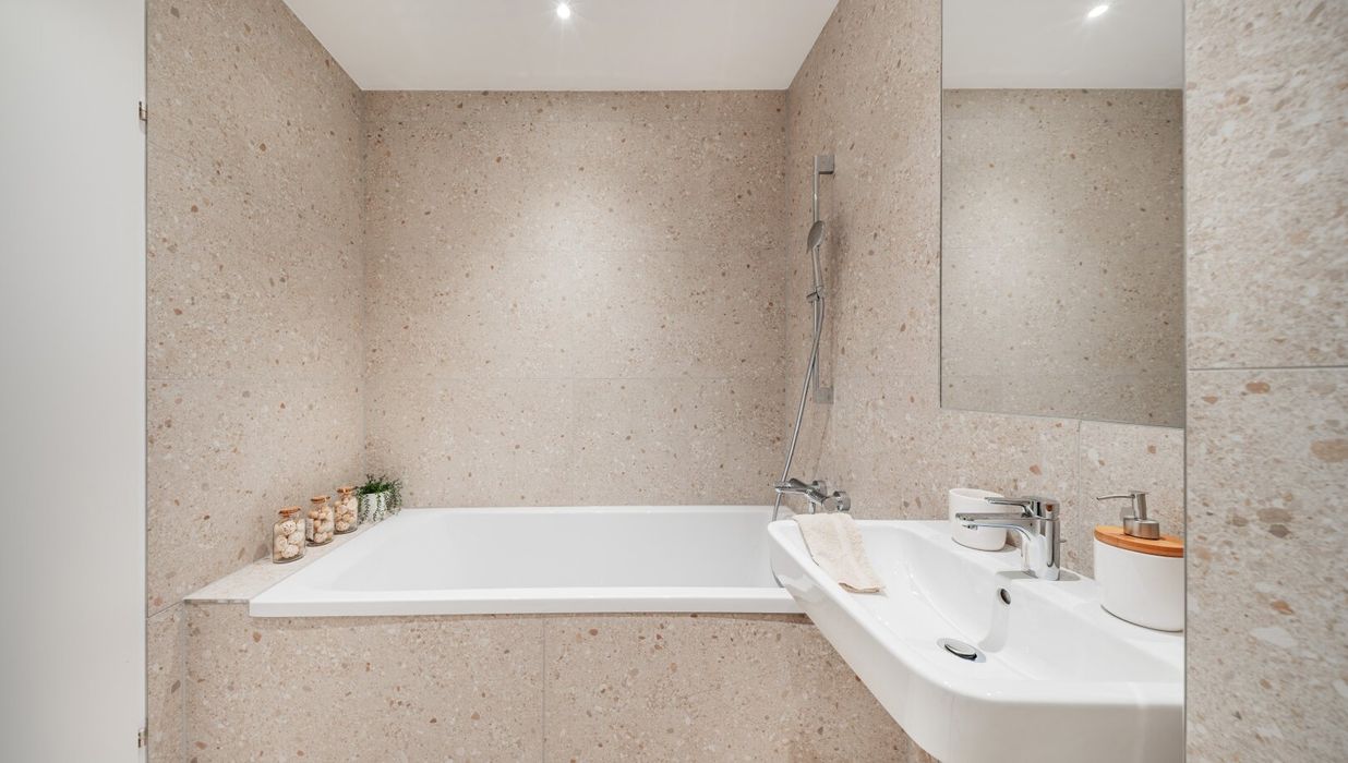 Die sorgfältig geplanten Eigentumswohnungen und Townhouses bieten mit ihren vielfältigen Grundrissen und Wohnungsgrößen für jede Lebensphase die ideale Wohnlösung. Ein behagliches Wohnambiente erzeugen die edlen Eichenparkettböden sowie die hochwertige Sanitärausstattung in den Bädern. Die Raumtemperatur lässt sich bequem über die Fußbodenheizung, die durch Fernwärme betrieben wird, sowie über die elektrisch bedienbaren Raffstores oder Rollläden regulieren. In den Dachgeschosswohnungen sorgen zusätzlich installierte Klimaanlagen dafür, dass es auch im Sommer angenehm kühl bleibt. Jede Wohneinheit verfügt über eine eigene private Freifläche, die die Wohnräume nach außen erweitert und einen idealen Rückzugsort für Erholung und Entspannung bietet.