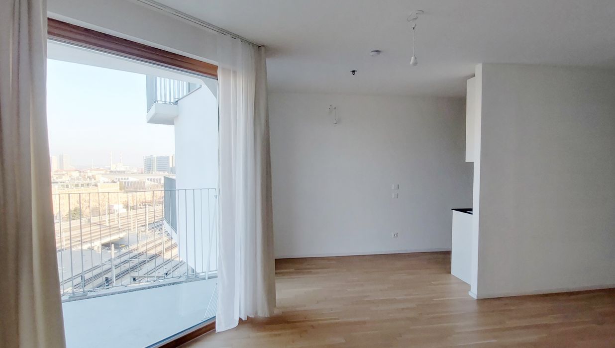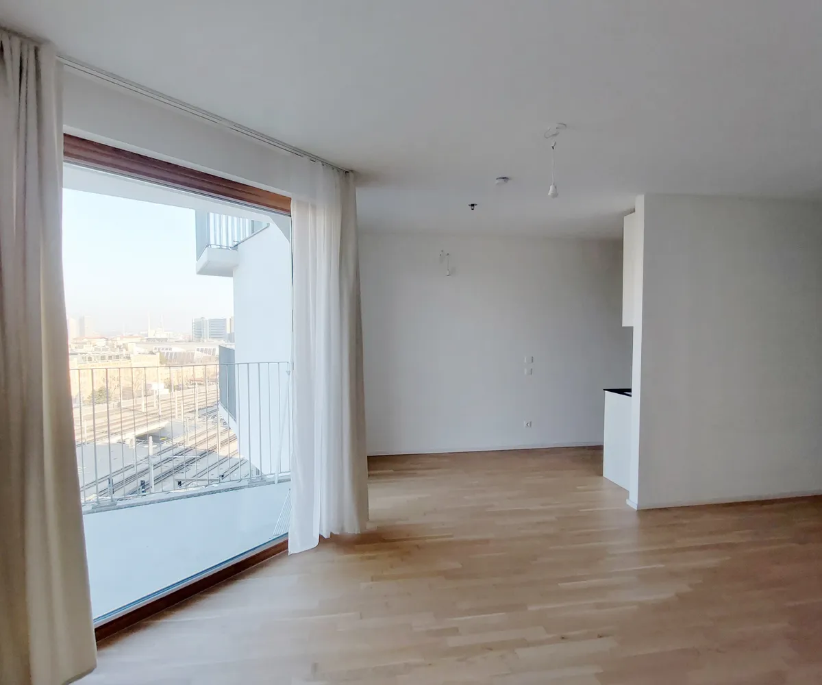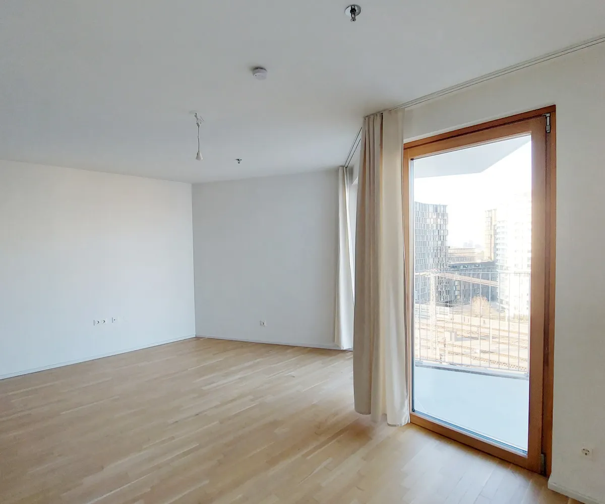 Sonnwendviertel: 1-Zimmer-Wohnung mit Balkon in der 18. Etage – Fitnessraum, Co-Working & Rooftop-Terrasse inklusive!