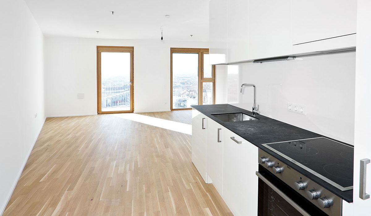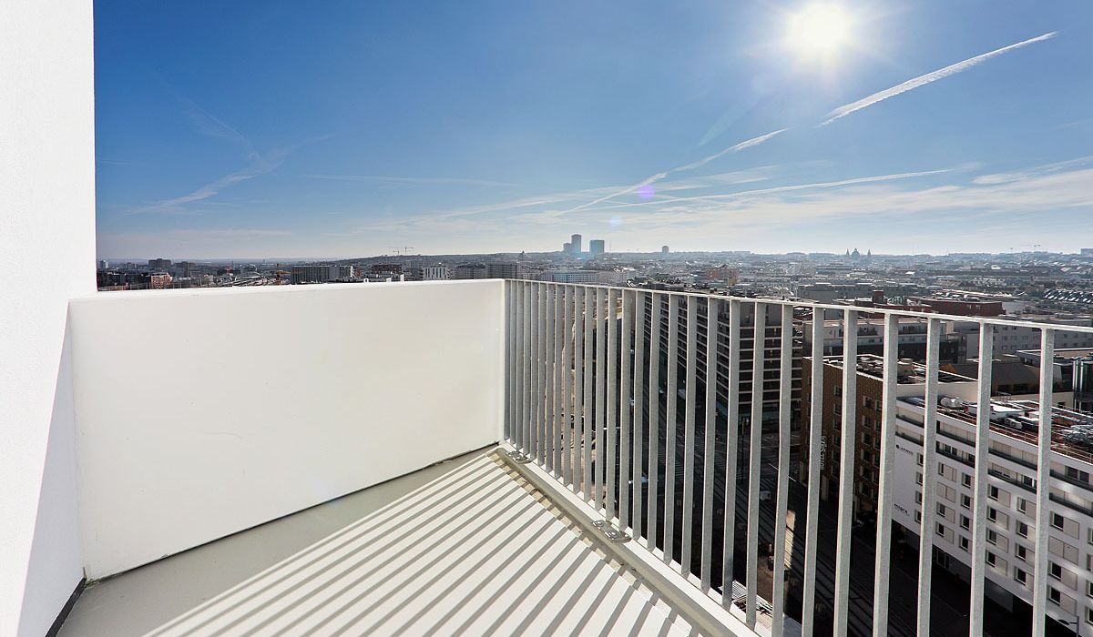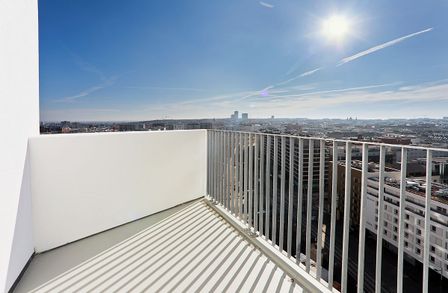 Sonnwendviertel: 1-Zimmer-Wohnung mit Balkon in der 18. Etage – Fitnessraum, Co-Working & Rooftop-Terrasse inklusive!