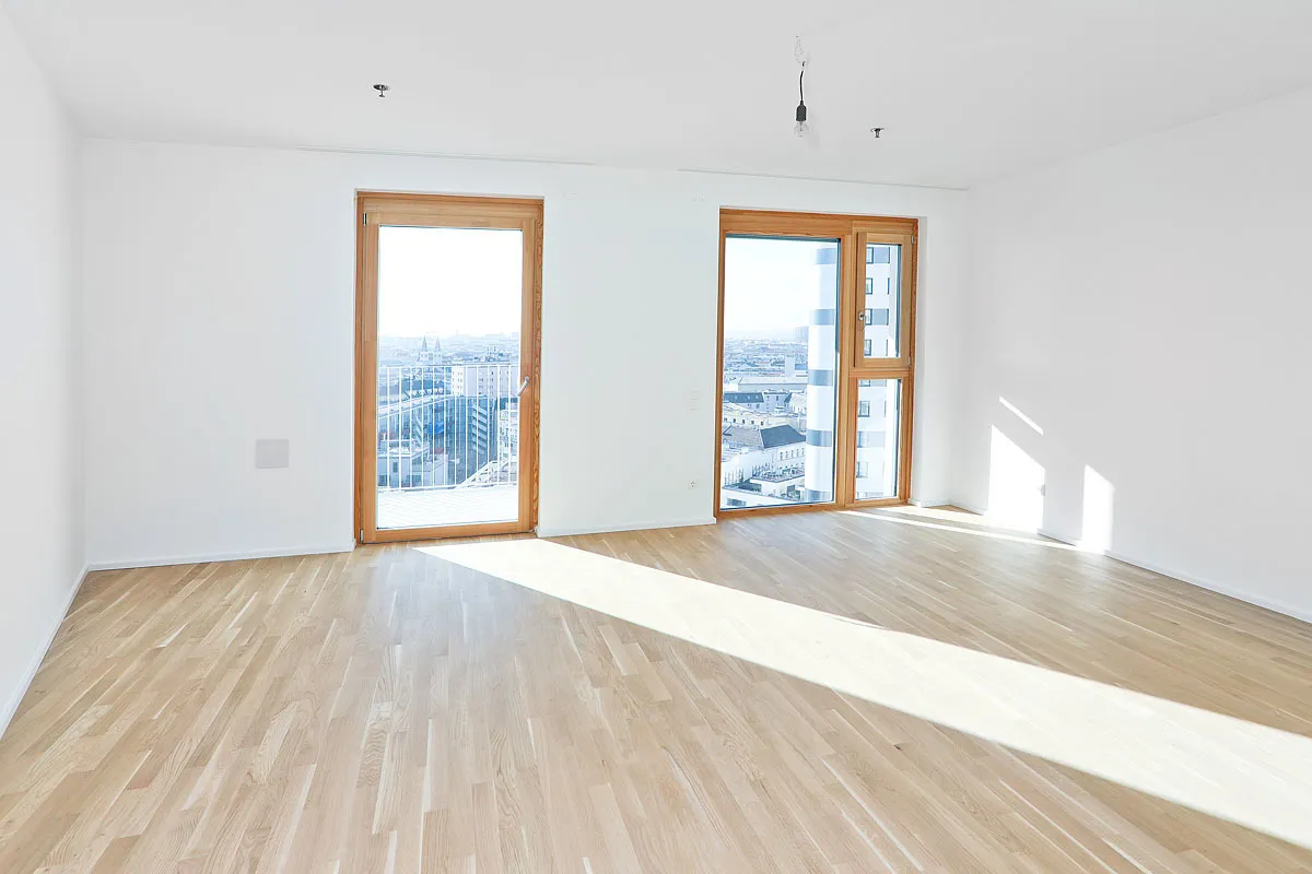 Sonnwendviertel: 1-Zimmer-Wohnung mit Balkon in der 15. Etage – Fitnessraum, Co-Working & Rooftop-Terrasse inklusive!