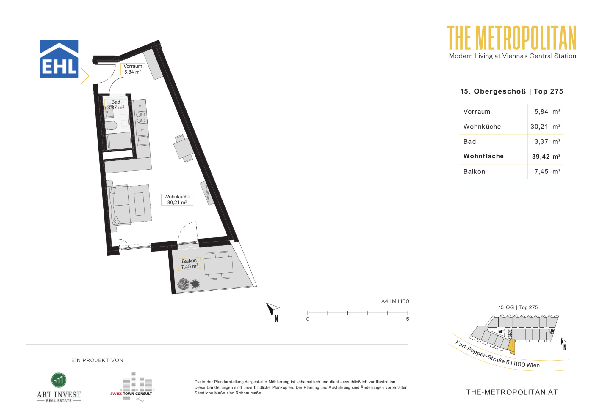 Das moderne Wohnbauprojekt „METROPOLITAN – Modern Living“ befindet sich im aufstrebenden und lebendigen Sonnwendviertel, nur wenige Gehminuten vom neu errichteten Hauptbahnhof entfernt. Die Lage bietet eine hervorragende Infrastruktur mit zahlreichen Einkaufsmöglichkeiten, Restaurants und Cafés in der Umgebung. Besonders hervorzuheben ist die Nähe zum Helmut-Zilk-Park, der Erholung und Freizeitspaß für die ganze Familie bietet.