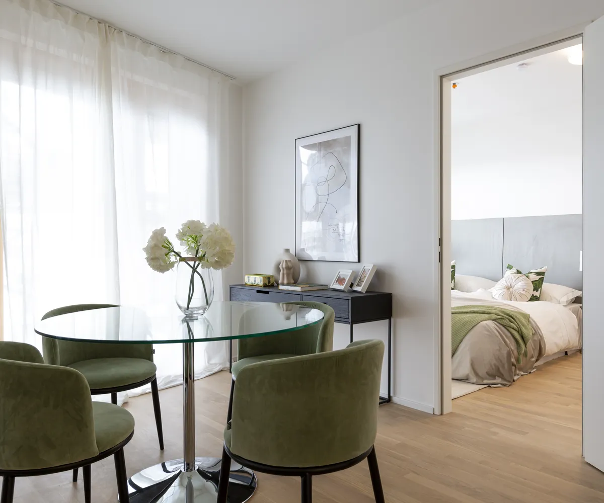 Inmitten des auflebendem Sonnwendviertel, bietet der moderne Wohnbaukomplex einen hauseigenen, hochwertig ausgestatteten Indoor-Fitnessbereich, sowie einen Co-Working-Space und eine Rooftop-Terrace.