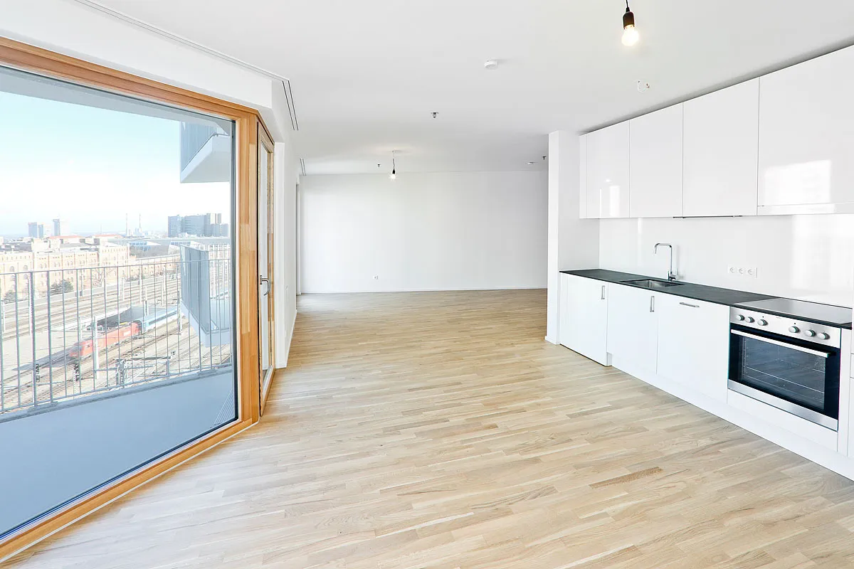 Sonnwendviertel: 1-Zimmer-Wohnung mit Balkon in der 5. Etage – Fitnessraum, Co-Working & Rooftop-Terrasse inklusive!