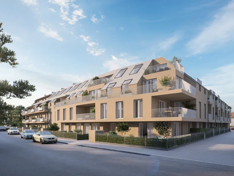 Hier stehen 83 attraktive, bereits bezugsfertige Wohnungen, umgeben von großzügigen Freiflächen, zum Verkauf. Ob mit einem gemütlichen Eigengarten, Balkon oder Terrasse – diese neue Wohnhausanlage bietet für jeden Wunsch die perfekte Außenfläche.