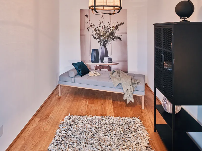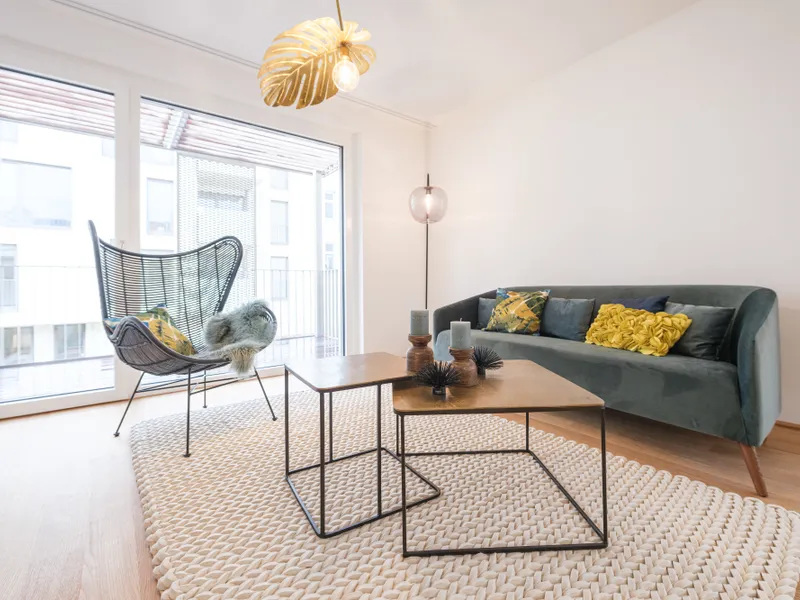 Die dargestellten möblierten Räume sind KI-generierte Visualisierungen und dienen lediglich der Veranschaulichung möglicher Einrichtungskonzepte . Die Möblierung ist nicht im Kaufpreis enthalten .