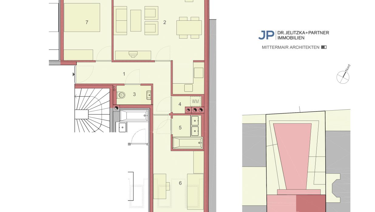 Die Wohnung selbst befindet sich im 2. Dachgeschoss des Gebäudes und gliedert sich in eine großzügige Wohnküche mit direktem Zugang auf die schöne Terrasse, zwei getrennt begehbare Schlafzimmer, ein Badezimmer mit Badewanne und Doppelwaschbecken, eine separate Toilette, einen Abstellraum mit Waschmaschinenanschluss, sowie einen Vorraum. Die ca. 10m² große Terrasse bietet Ihnen gemütliche Stunden an der frischen Luft.
