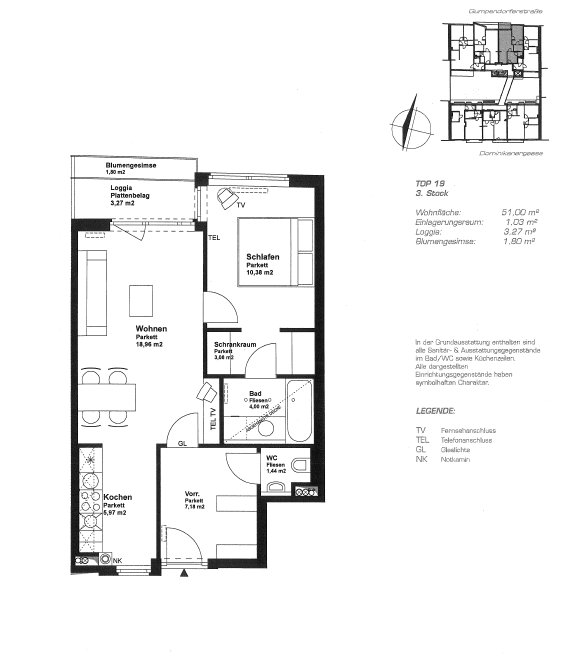 Diese Wohnung befindet sich im 3. Liftstock und verfügt über eine Wohnküche, ein Schlafzimmer mit Schrankraum, ein Badezimmer, ein separates WC, einen Vorraum sowie eine Loggia und Blumengesimse. Das Wohnhaus ist sehr modern, architektonisch anspruchsvoll und befindet sich im beliebten 6. Bezirk.