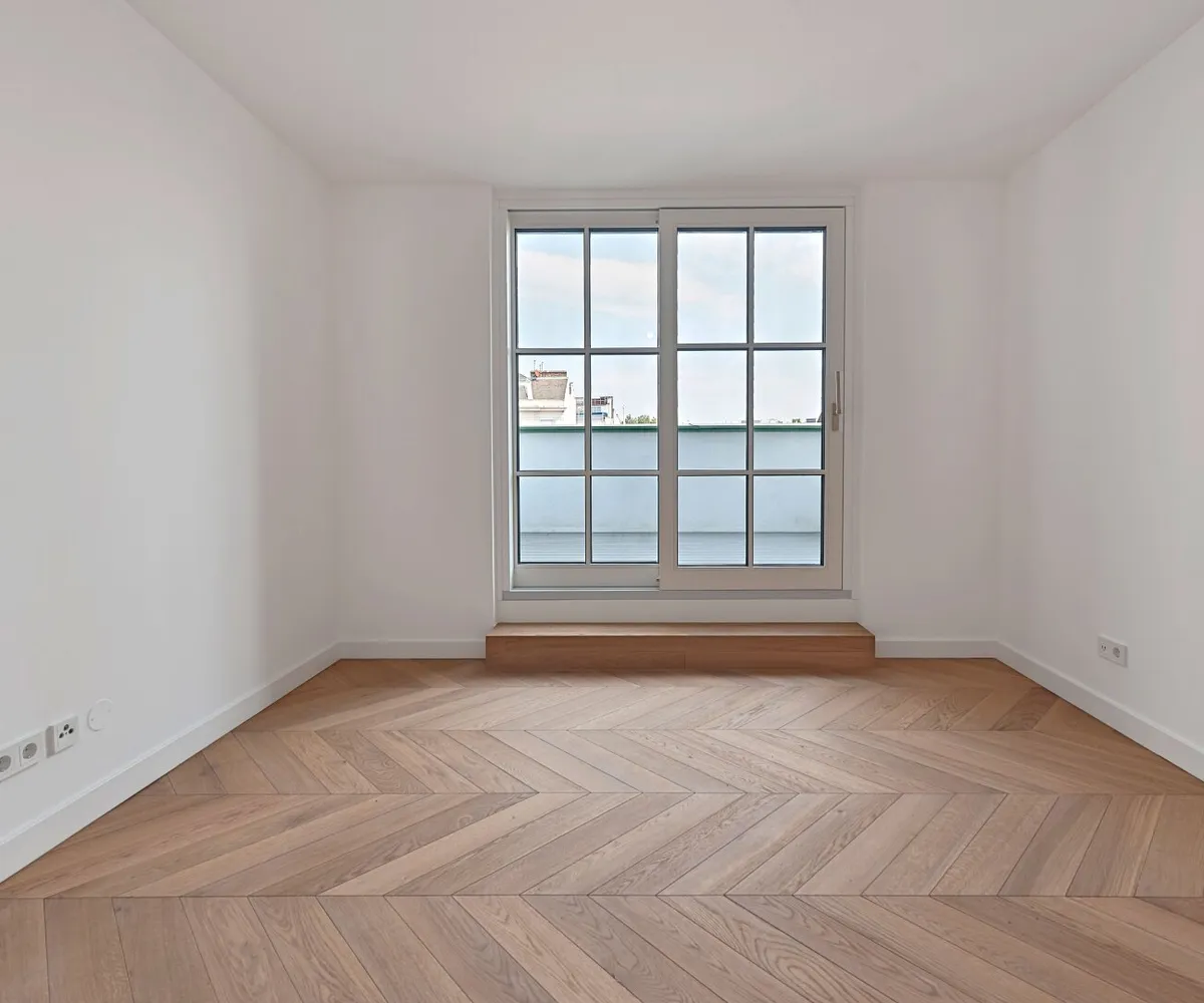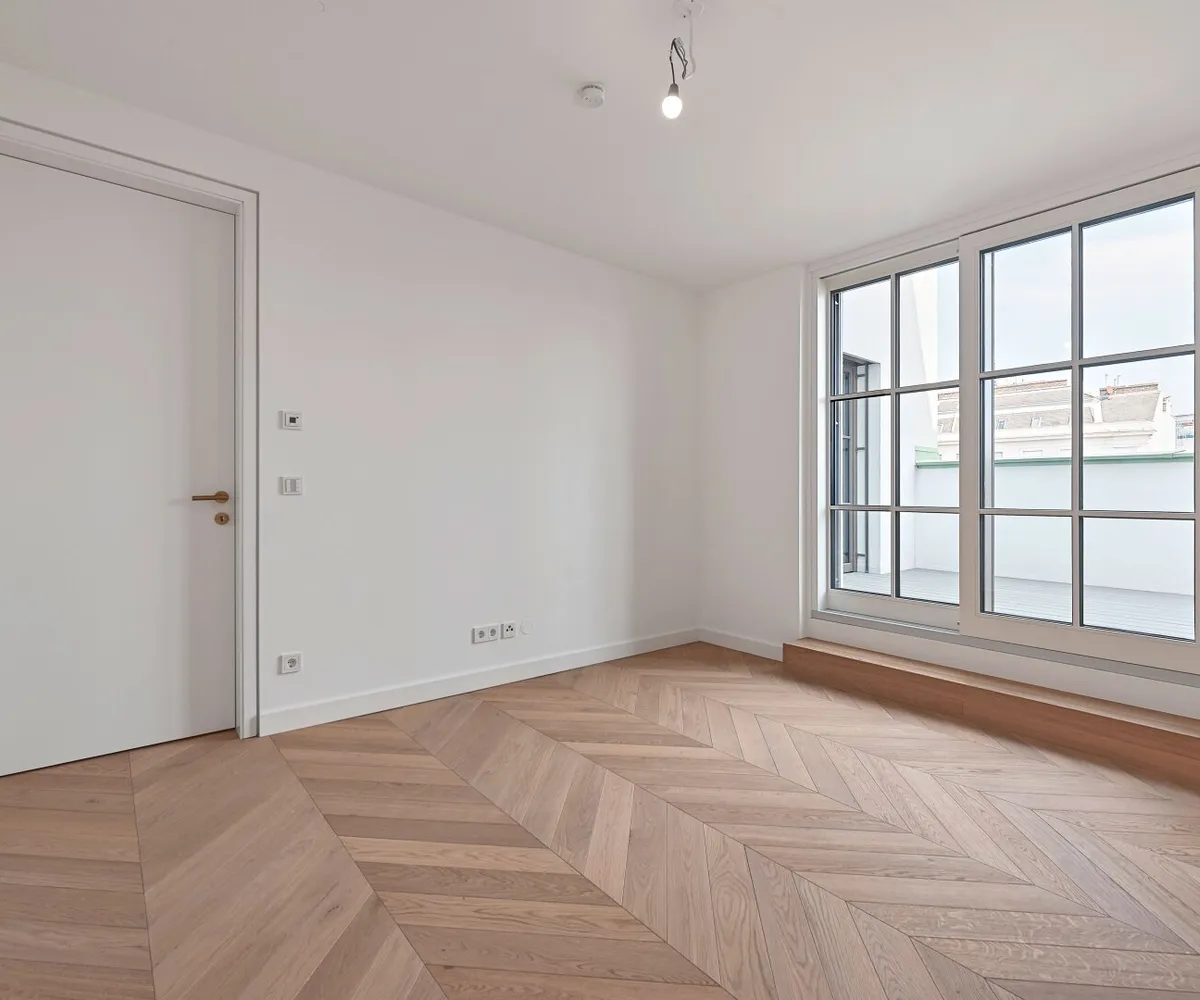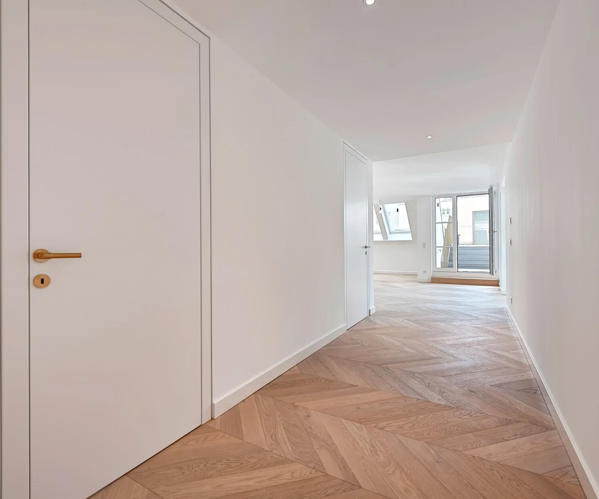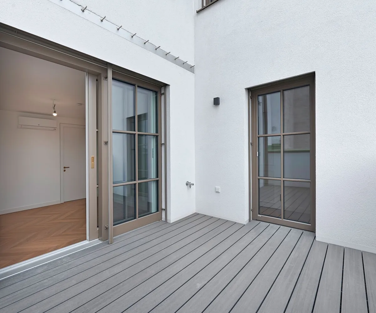 Der hofseitige 2-Zimmer-Erstbezug befindet sich im 1. Dachgeschoß (entspricht dem 5. Obergeschoß) und verfügt über ca. 78 qm Wohnfläche sowie zwei Terrassen im Gesamtausmaß von ca. 41 qm.