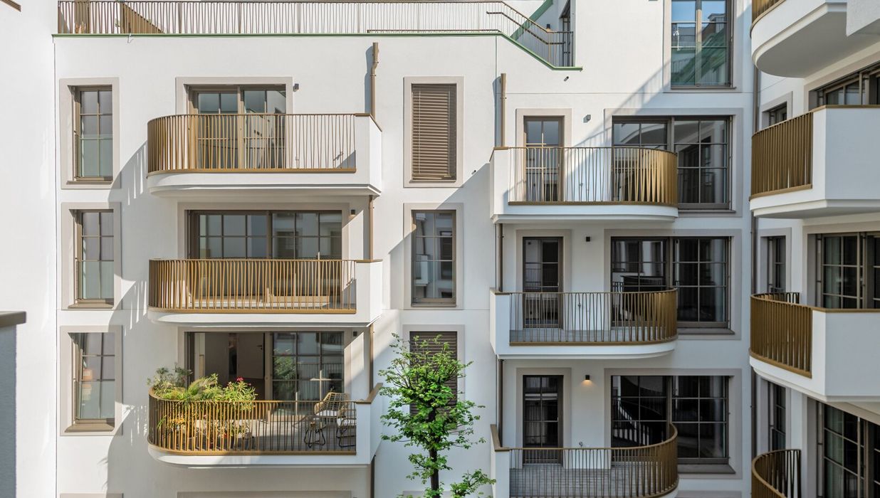 In THE FUSION by WINEGG finden Design und Funktionalität ihre schönste Entsprechung – mit dem Ziel, Sie mit allen Sinnen zu verwöhnen. Edle Materialien und ein Gespür für vollendete Inszenierung hauchen den exklusiven Wohnungen außergewöhnlichen Luxus ein. Der hochwertige Fischgrätparkett belebt jeden Wohnraum durch seine außergewöhnliche Optik und verströmt eine angenehm entschleunigende Wirkung. Großzügige Fensterfronten mit klassisch edlen Sprossen unterstreichen auf meisterhafte Weise den vornehmen Charakter des Gebäudes – innen wie außen. Dank klimatisierter Wohnräume in allen Geschoßen können Sie stets in Frische und Entspannung verweilen. Perlgoldene Stabgeländer schmücken die Freibereiche und werden zum wertvollen Designelement. Ihre besondere Eleganz ergibt sich durch sanfte Rundungen und größte handwerkliche Präzision.