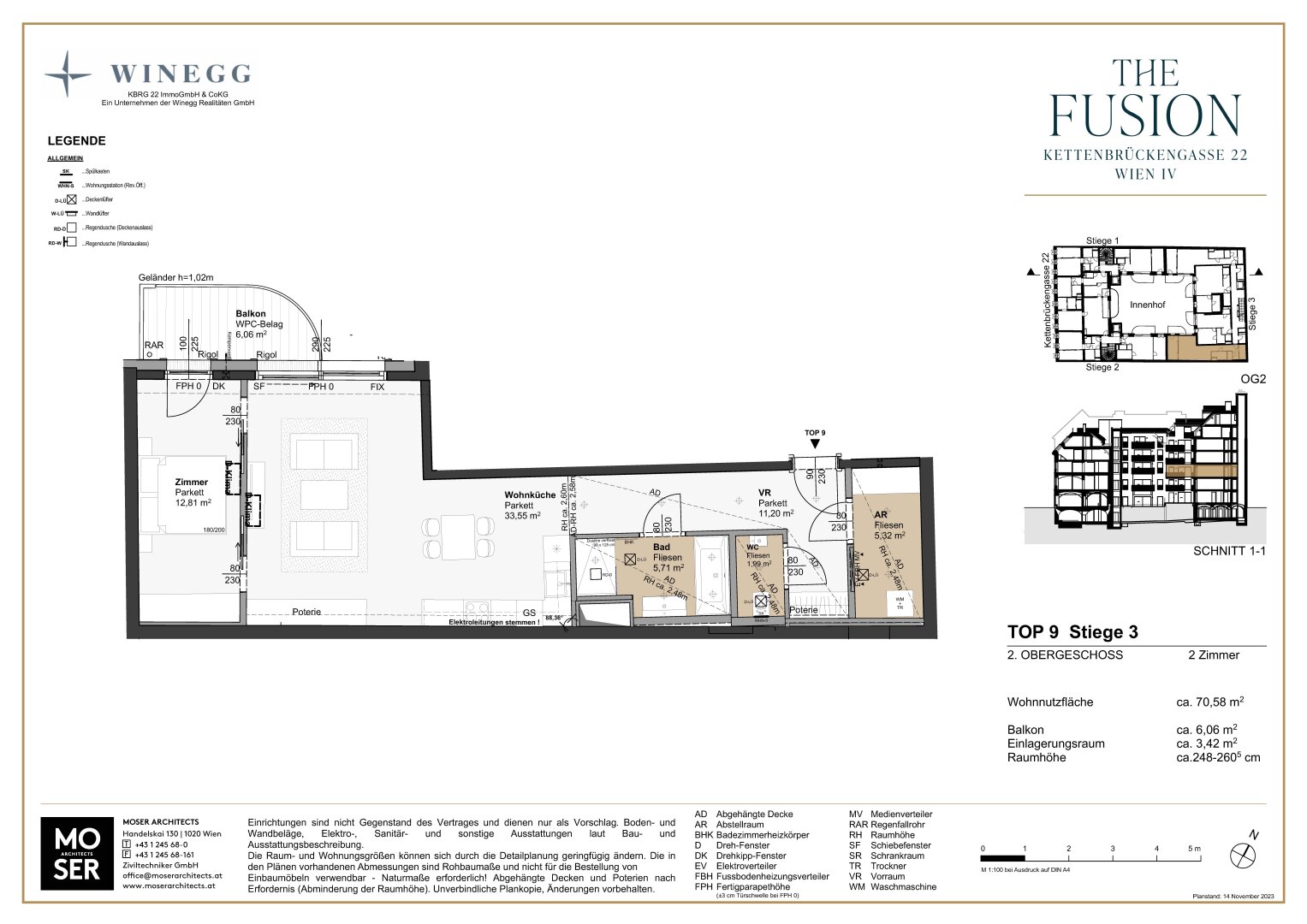Direkt am Naschmarkt vereint das Projekt „THE FUSION by WINEGG“ eindrucksvoll unterschiedliche Einflüsse und bündelt das Beste aus mehreren Epochen. Der geschichtsträchtige Vordertrakt der Liegenschaft in der Kettenbrückengasse 22 ist dem Biedermeier zuzurechnen und wurde 1827 vom Bauherren Friedrich Sträussle erbaut. Erst in der Gründerzeit wurde der hintere Gebäudetrakt ergänzt. Dieser Hoftrakt wurde stets als Gewerbegebäude genutzt, während der Straßentrakt im Erdgeschoß als Geschäftsfläche diente und in den Obergeschoßen seit jeher Wohnungen beherbergte. Bei der zeitgemäßen Sanierung und sorgfältigen Modernisierung wird besonders darauf geachtet, den wertvollen historischen Charakter des Gebäudes innen wie außen auf respektvolle Weise zu bewahren.