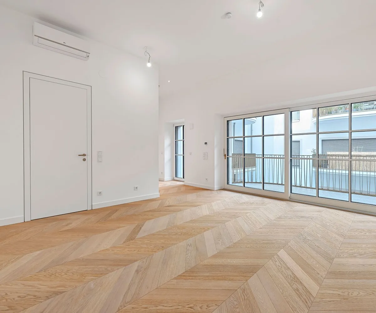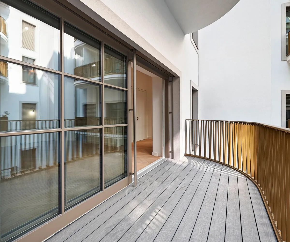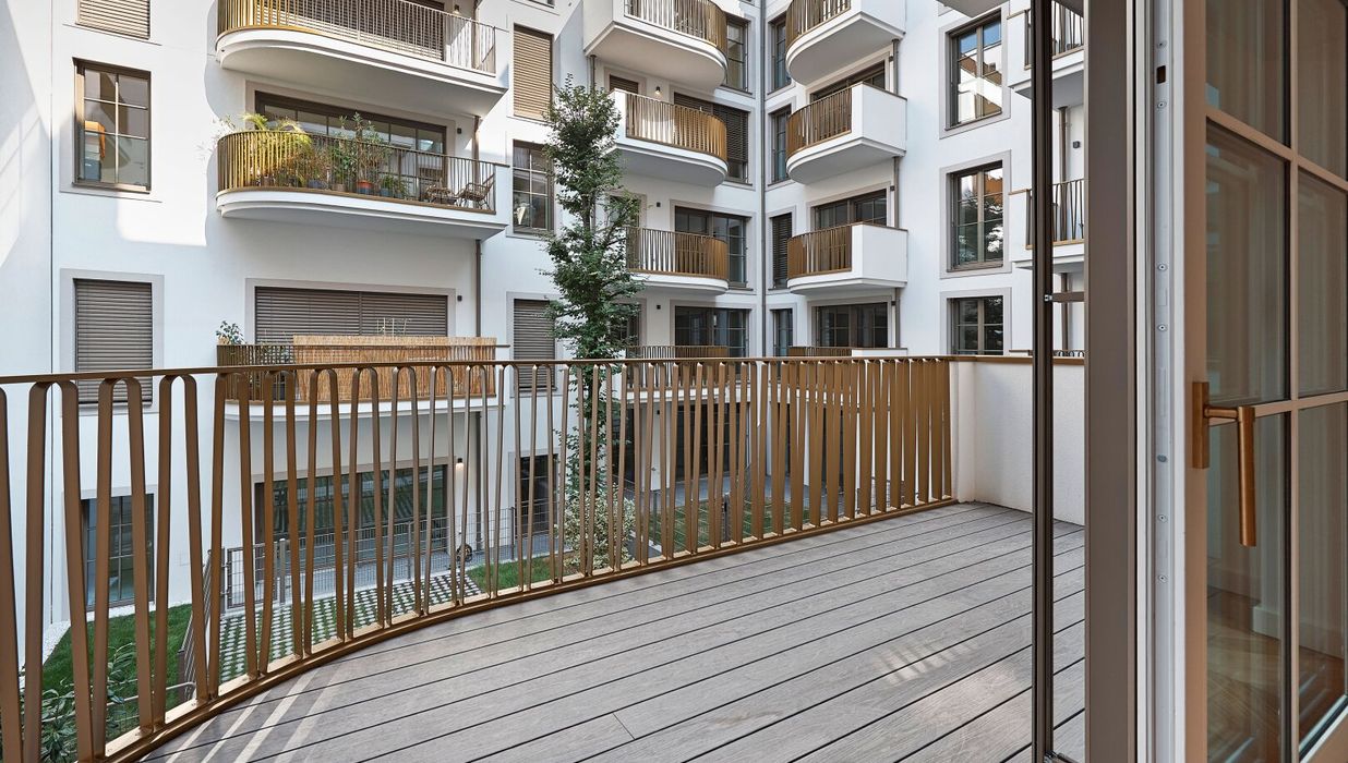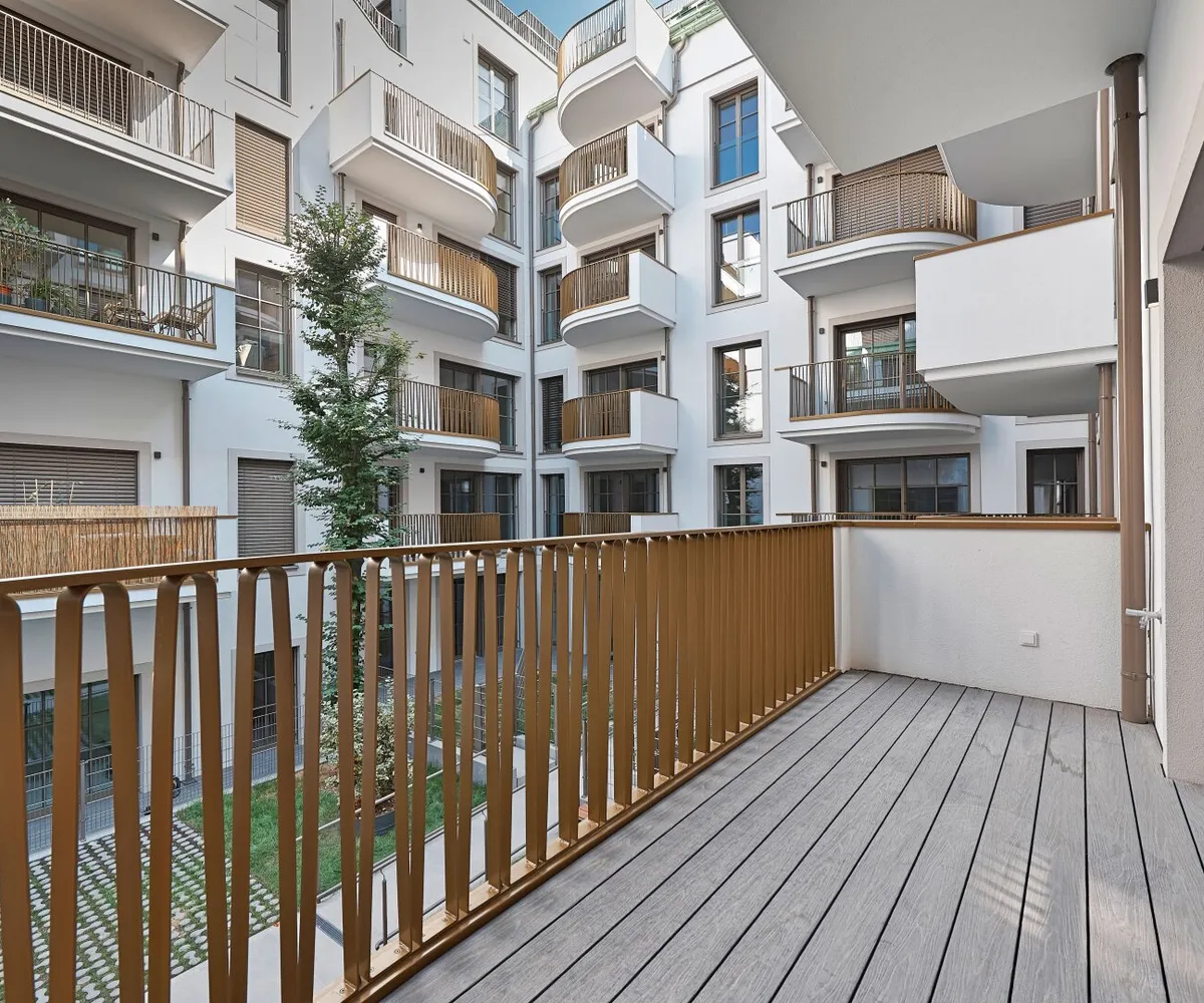 In THE FUSION by WINEGG finden Design und Funktionalität ihre schönste Entsprechung – mit dem Ziel, Sie mit allen Sinnen zu verwöhnen. Edle Materialien und ein Gespür für vollendete Inszenierung hauchen den exklusiven Wohnungen außergewöhnlichen Luxus ein. Der hochwertige Fischgrätparkett belebt jeden Wohnraum durch seine außergewöhnliche Optik und verströmt eine angenehm entschleunigende Wirkung. Großzügige Fensterfronten mit klassisch edlen Sprossen unterstreichen auf meisterhafte Weise den vornehmen Charakter des Gebäudes – innen wie außen. Dank klimatisierter Wohnräume in allen Geschoßen können Sie stets in Frische und Entspannung verweilen. Perlgoldene Stabgeländer schmücken die Freibereiche und werden zum wertvollen Designelement. Ihre besondere Eleganz ergibt sich durch sanfte Rundungen und größte handwerkliche Präzision.