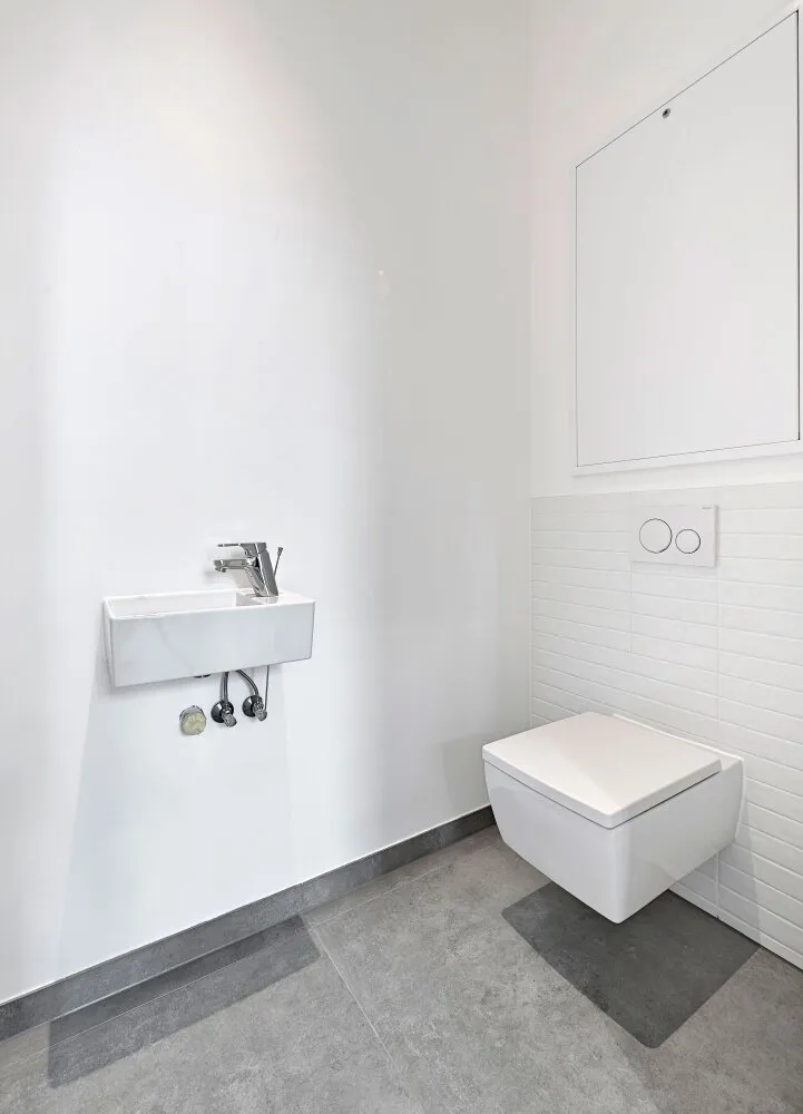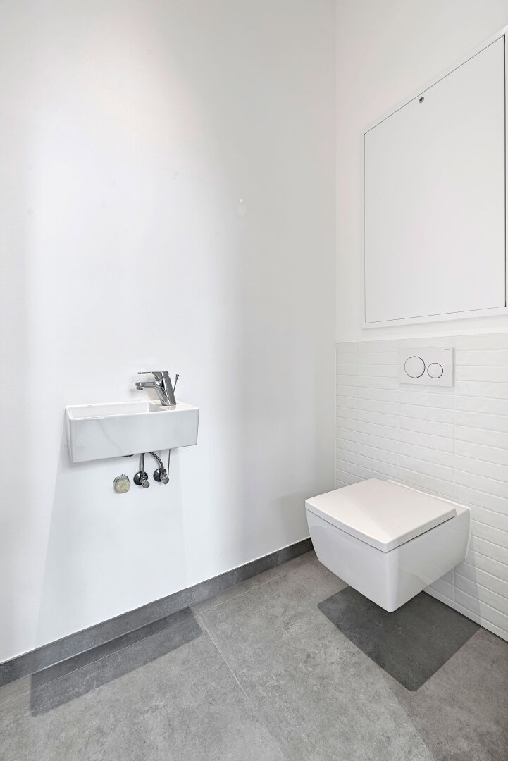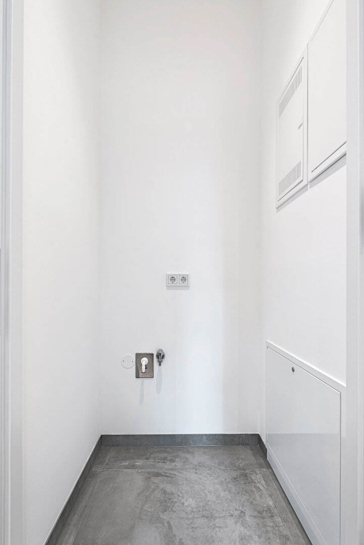 Über den Vorraum gelangt man in die Wohnküche mit ca. 25 qm, in das separate WC mit Handwaschbecken sowie in den Abstellraum mit Waschmaschinenanschluss. Das Badezimmer mit Badewanne, Dusche und Handwaschbecken lässt sich über die Wohnküche betreten. Das Schlafzimmer im Ausmaß von ca. 15 qm ist vom Wohnraum aus zu begehen. Die Raumhöhe beträgt ca. 2,5 m.