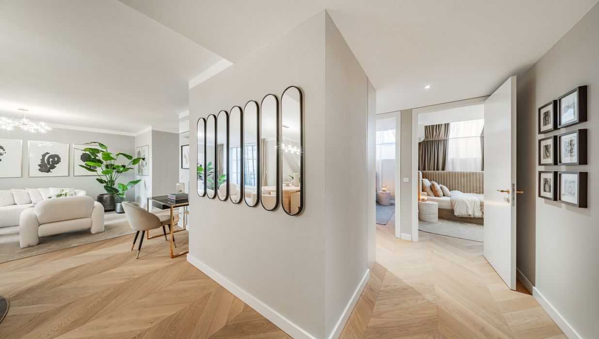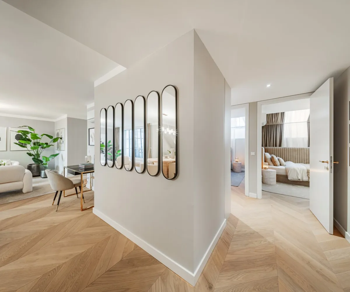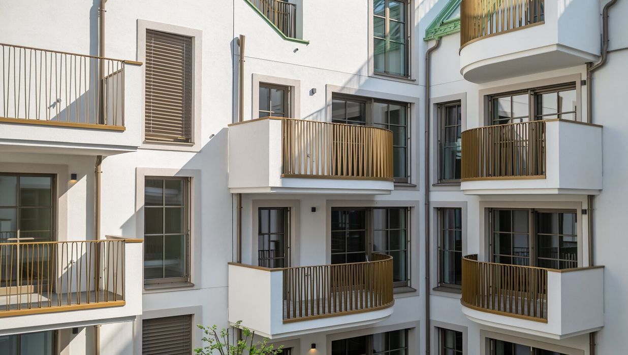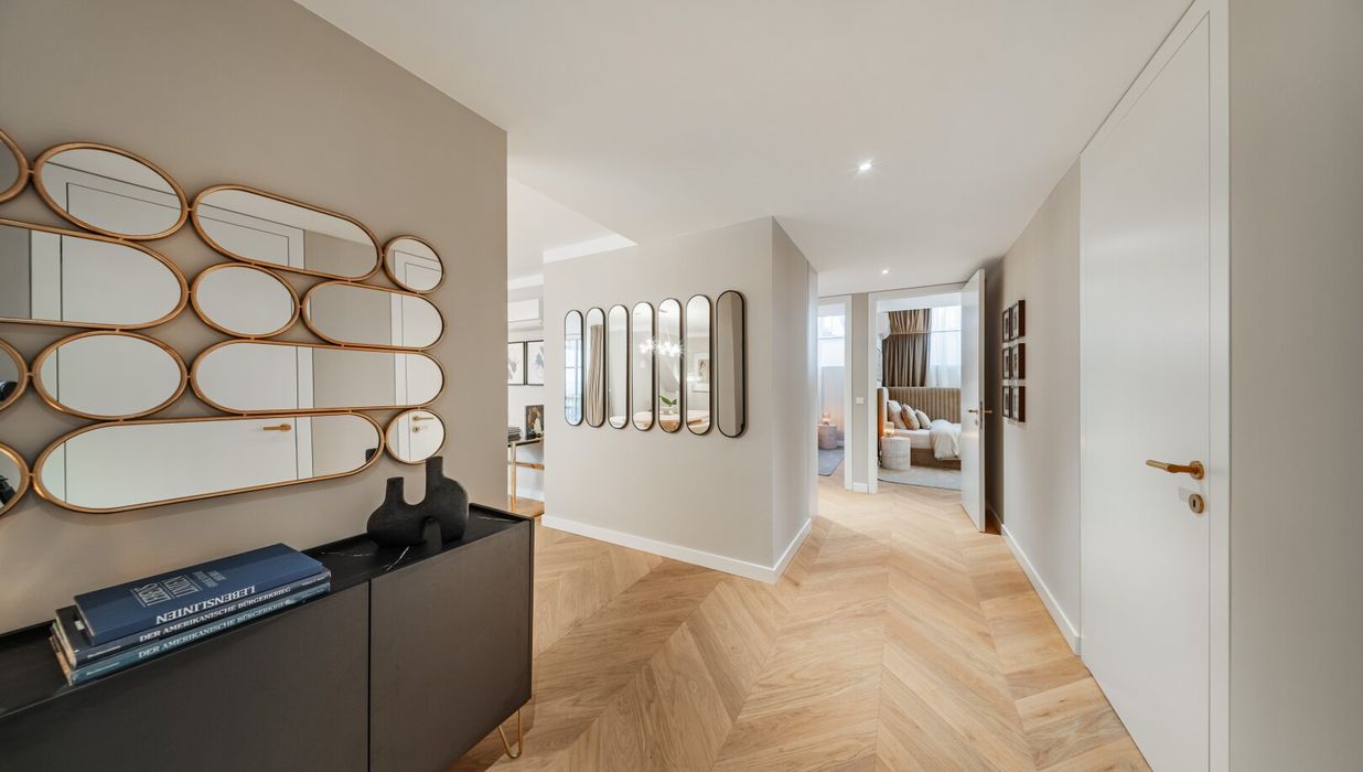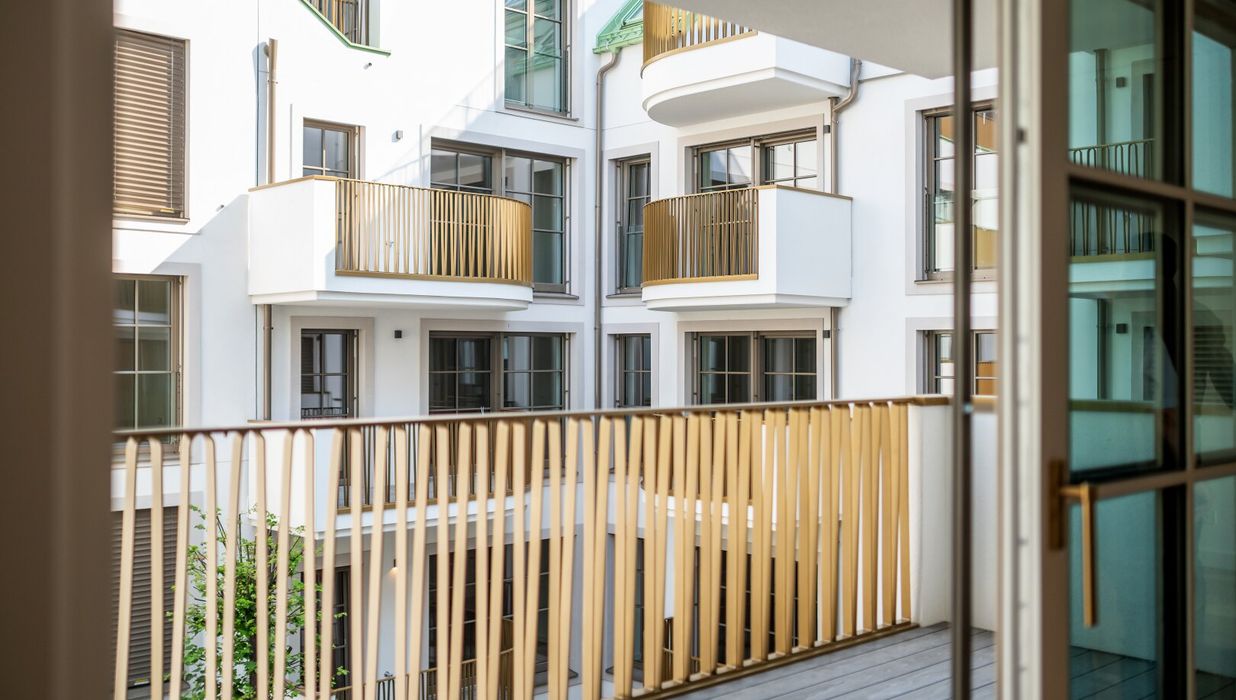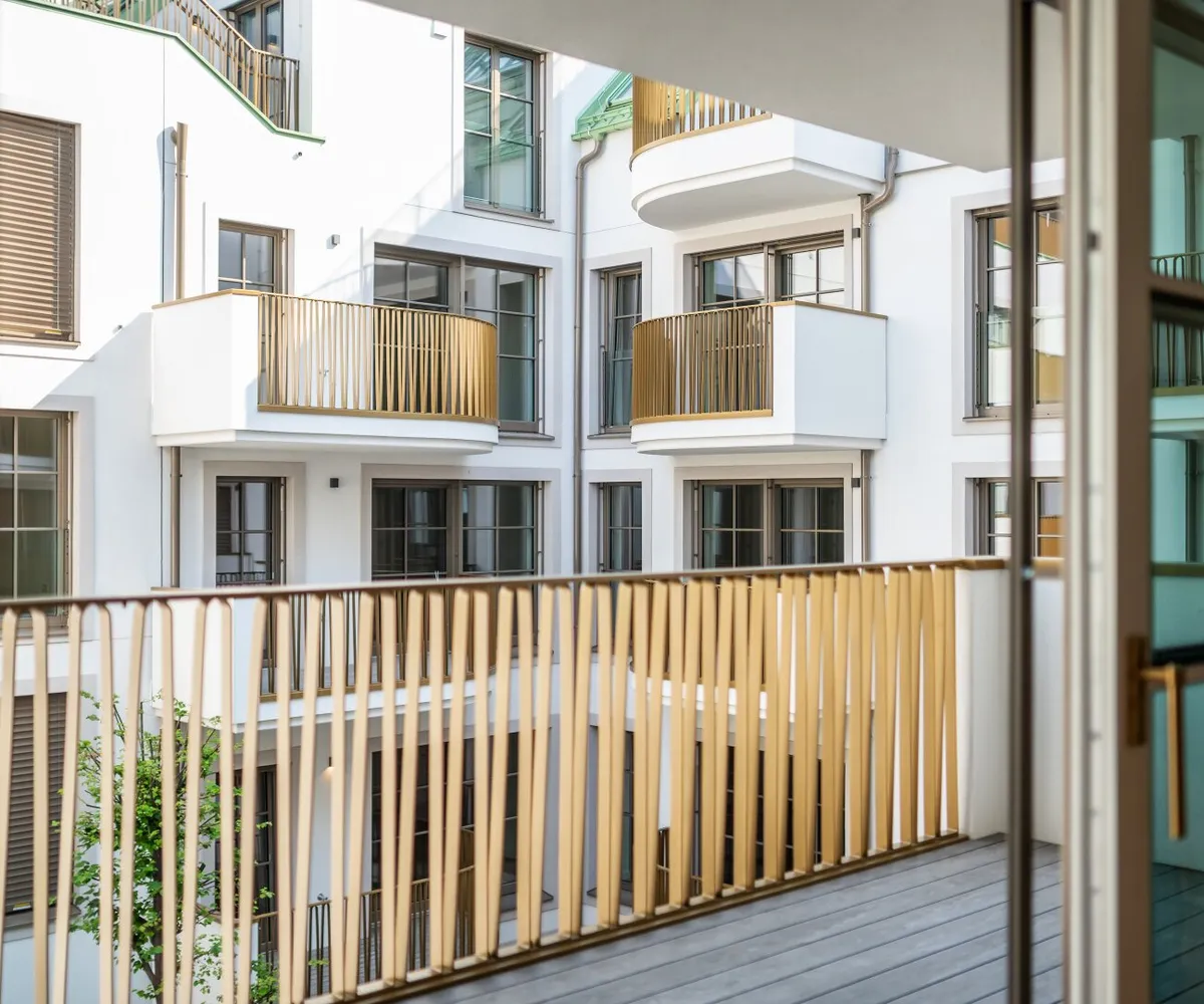 In THE FUSION by WINEGG finden Design und Funktionalität ihre schönste Entsprechung – mit dem Ziel, Sie mit allen Sinnen zu verwöhnen. Edle Materialien und ein Gespür für vollendete Inszenierung hauchen den exklusiven Wohnungen außergewöhnlichen Luxus ein. Der hochwertige Fischgrätparkett belebt jeden Wohnraum durch seine außergewöhnliche Optik und verströmt eine angenehm entschleunigende Wirkung. Großzügige Fensterfronten mit klassisch edlen Sprossen unterstreichen auf meisterhafte Weise den vornehmen Charakter des Gebäudes – innen wie außen. Dank klimatisierter Wohnräume in allen Geschoßen können Sie stets in Frische und Entspannung verweilen. Perlgoldene Stabgeländer schmücken die Freibereiche und werden zum wertvollen Designelement. Ihre besondere Eleganz ergibt sich durch sanfte Rundungen und größte handwerkliche Präzision.