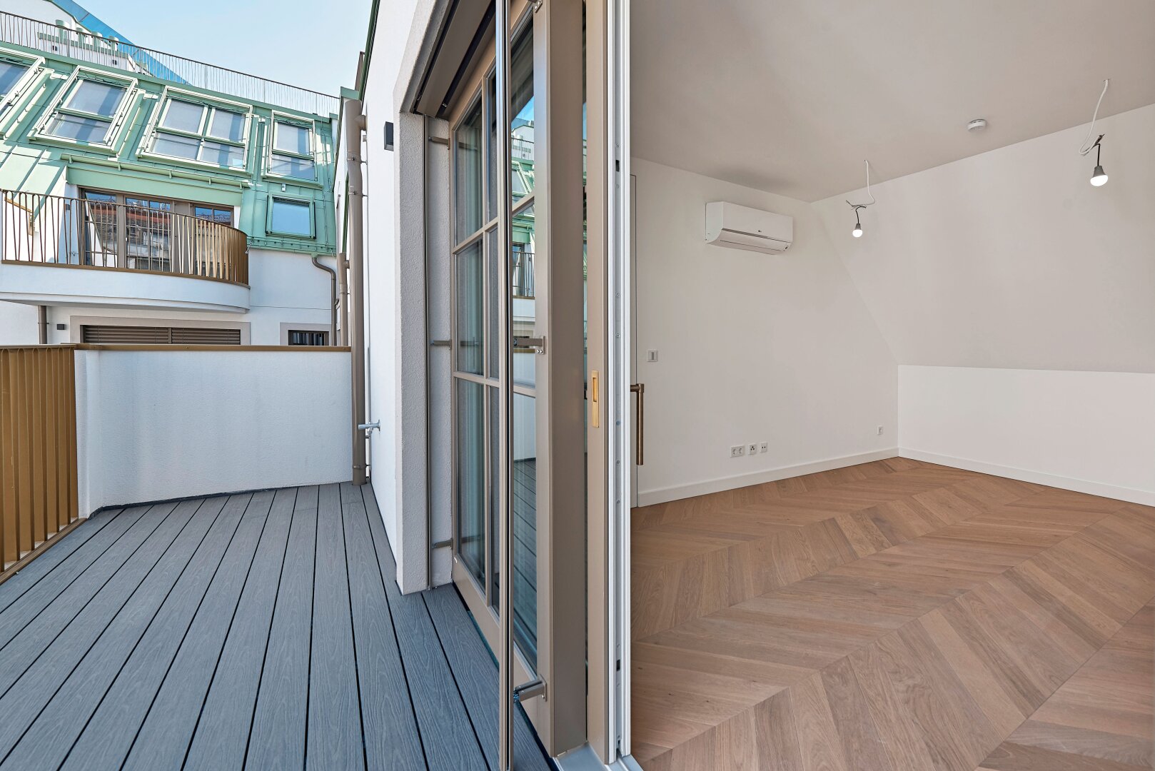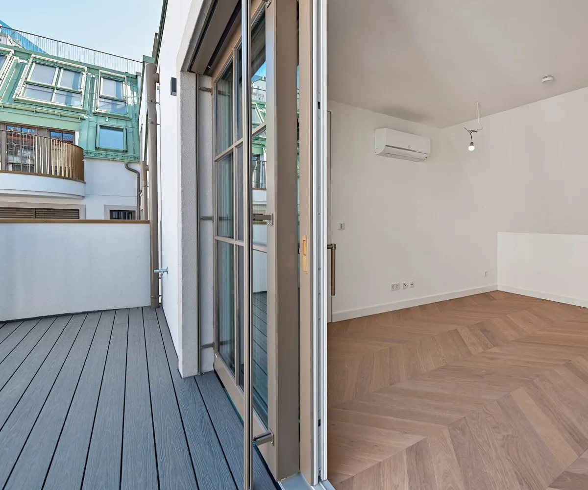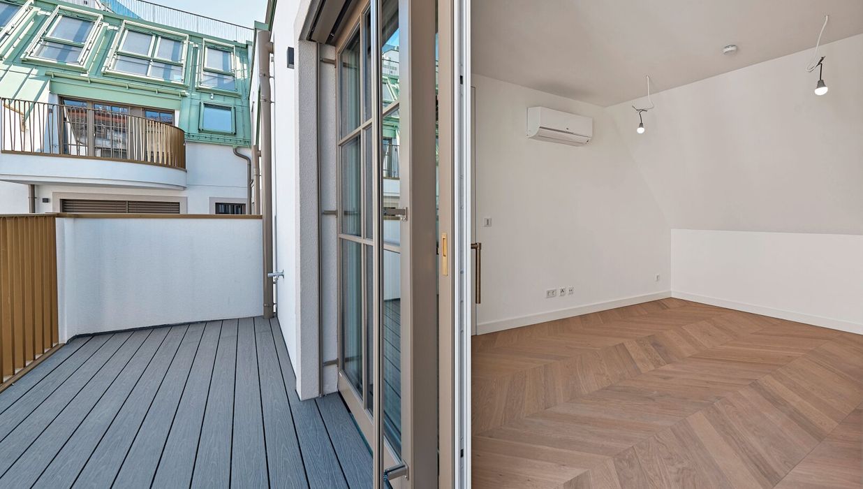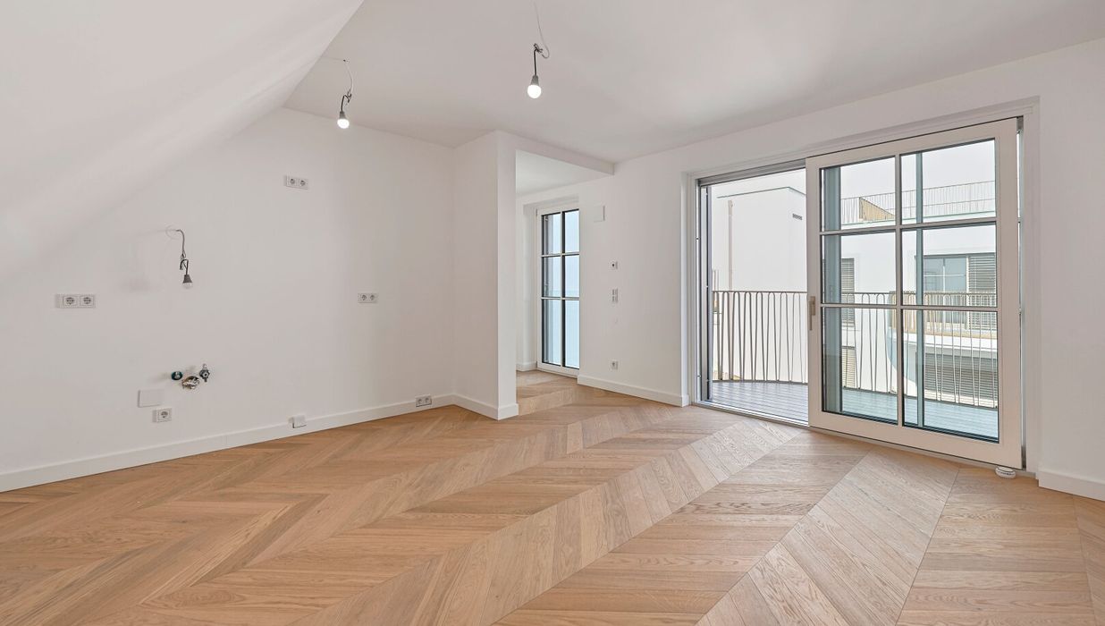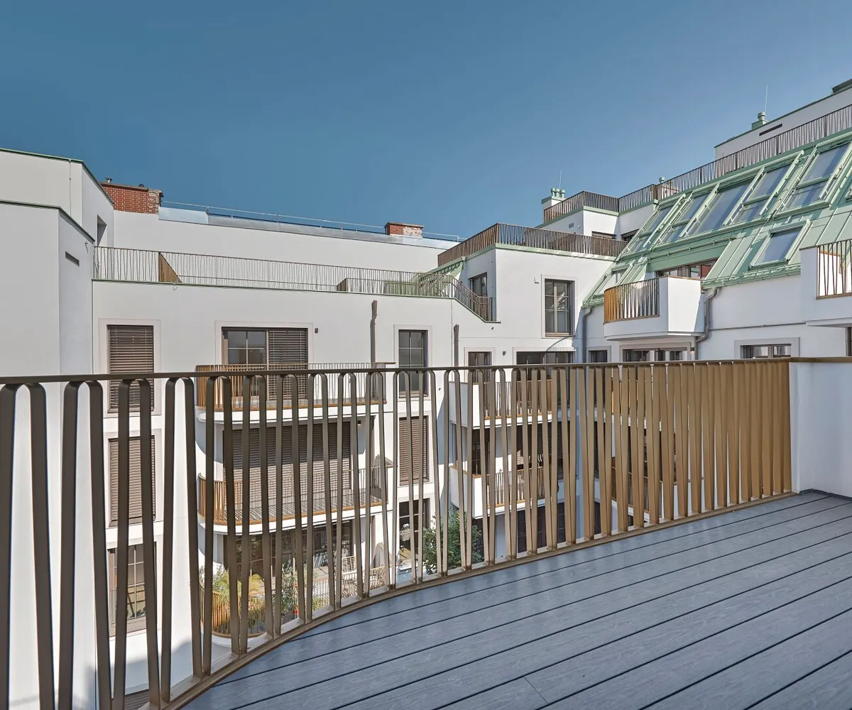 In THE FUSION by WINEGG finden Design und Funktionalität ihre schönste Entsprechung – mit dem Ziel, Sie mit allen Sinnen zu verwöhnen. Edle Materialien und ein Gespür für vollendete Inszenierung hauchen den exklusiven Wohnungen außergewöhnlichen Luxus ein. Der hochwertige Fischgrätparkett belebt jeden Wohnraum durch seine außergewöhnliche Optik und verströmt eine angenehm entschleunigende Wirkung. Großzügige Fensterfronten mit klassisch edlen Sprossen unterstreichen auf meisterhafte Weise den vornehmen Charakter des Gebäudes – innen wie außen. Dank klimatisierter Wohnräume in allen Geschoßen können Sie stets in Frische und Entspannung verweilen. Perlgoldene Stabgeländer schmücken die Freibereiche und werden zum wertvollen Designelement. Ihre besondere Eleganz ergibt sich durch sanfte Rundungen und größte handwerkliche Präzision.