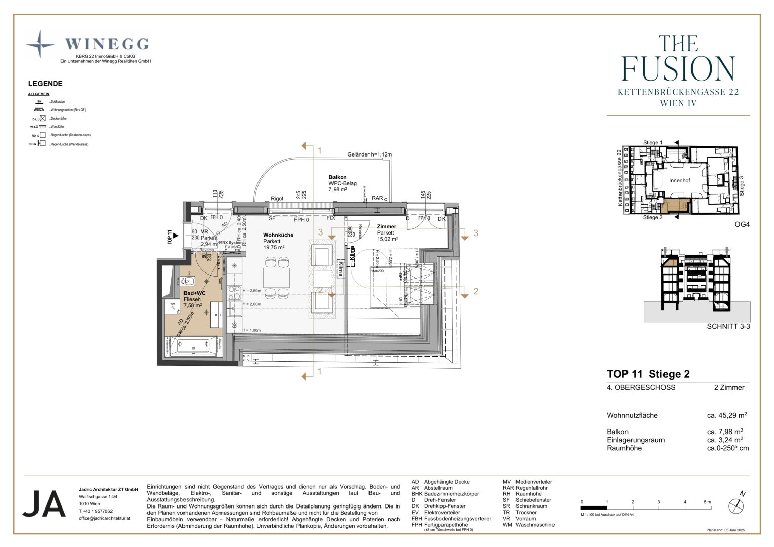 Diese 2-Zimmer Wohnung verfügt über ca. 54 qm Wohnfläche, befindet sich im 4. Liftstock auf Stiege 2 und ist hofseitig ausgerichtet.