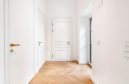 In THE FUSION by WINEGG finden Design und Funktionalität ihre schönste Entsprechung – mit dem Ziel, Sie mit allen Sinnen zu verwöhnen. Edle Materialien und ein Gespür für vollendete Inszenierung hauchen den exklusiven Wohnungen außergewöhnlichen Luxus ein. Der hochwertige Fischgrätparkett belebt jeden Wohnraum durch seine außergewöhnliche Optik und verströmt eine angenehm entschleunigende Wirkung. Großzügige Fensterfronten mit klassisch edlen Sprossen unterstreichen auf meisterhafte Weise den vornehmen Charakter des Gebäudes – innen wie außen. Dank klimatisierter Wohnräume in allen Geschoßen können Sie stets in Frische und Entspannung verweilen. Perlgoldene Stabgeländer schmücken die Freibereiche und werden zum wertvollen Designelement. Ihre besondere Eleganz ergibt sich durch sanfte Rundungen und größte handwerkliche Präzision.