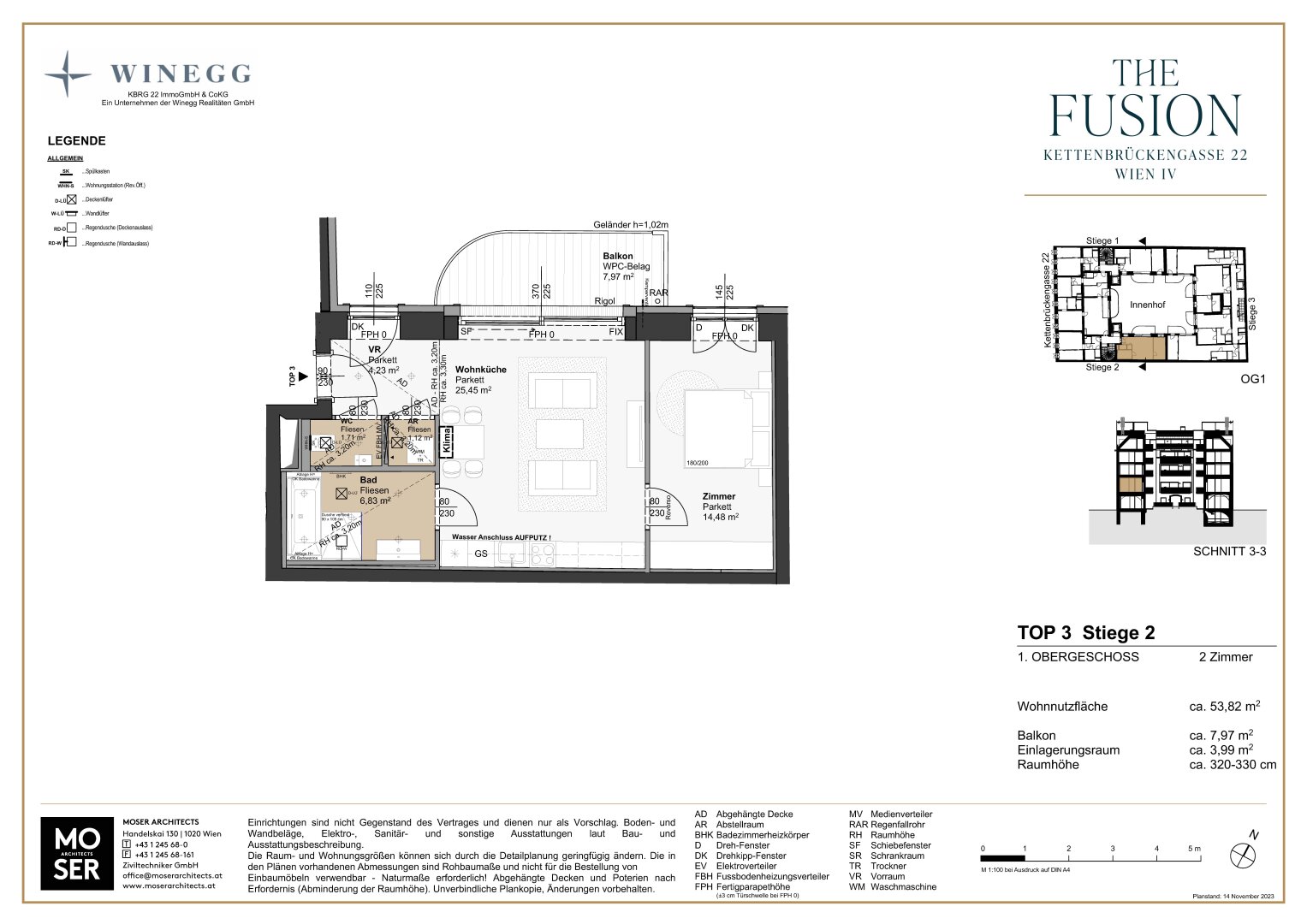 Diese 2-Zimmer Wohnung verfügt über ca. 54 qm, befindet sich im 1. Liftstock auf Stiege 2 und ist hofseitig ausgerichtet.