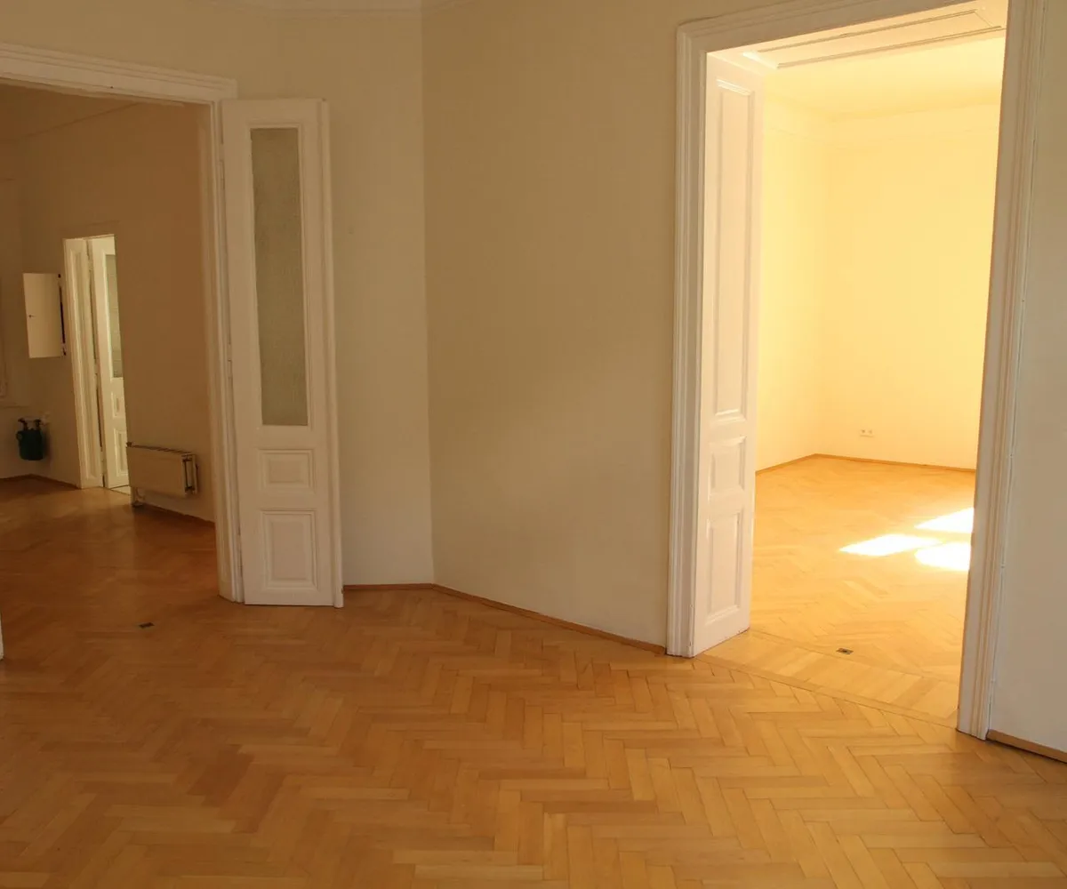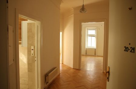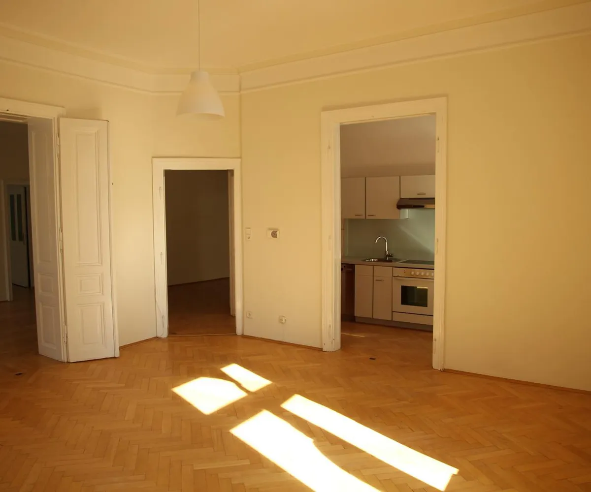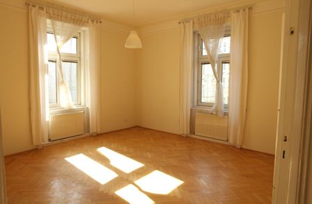 Die ca. 93 m² große Wohnung befindet sich im 1. Stock eines gepflegten Gründerzeithauses, das 2024 umfassend saniert wurde (neues Dach, neue Fassade, neu gestalteter Eingangsbereich).