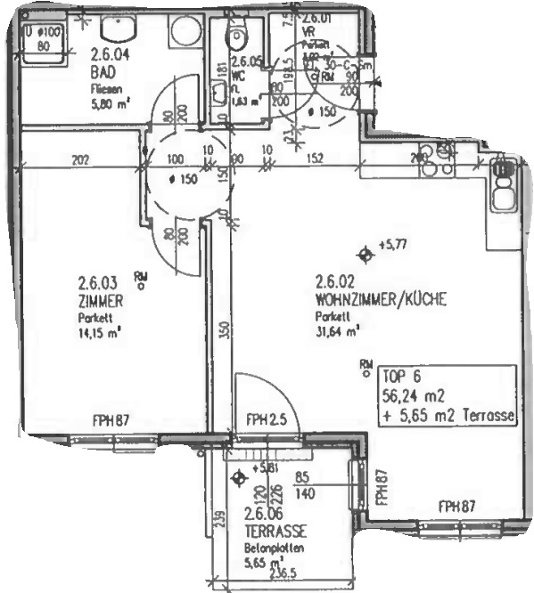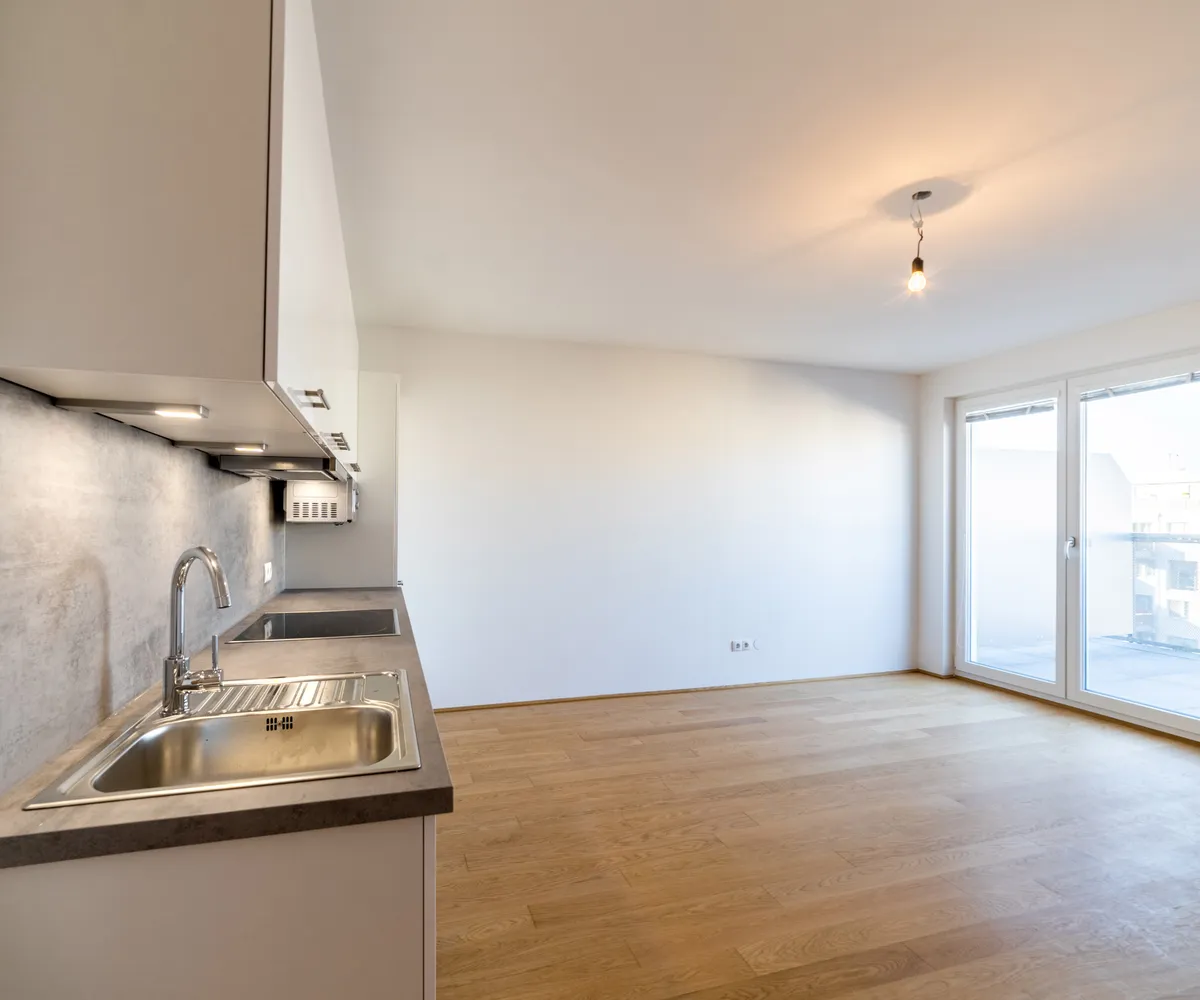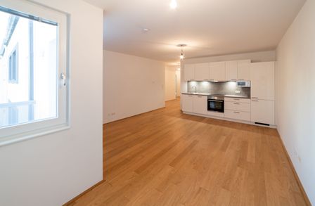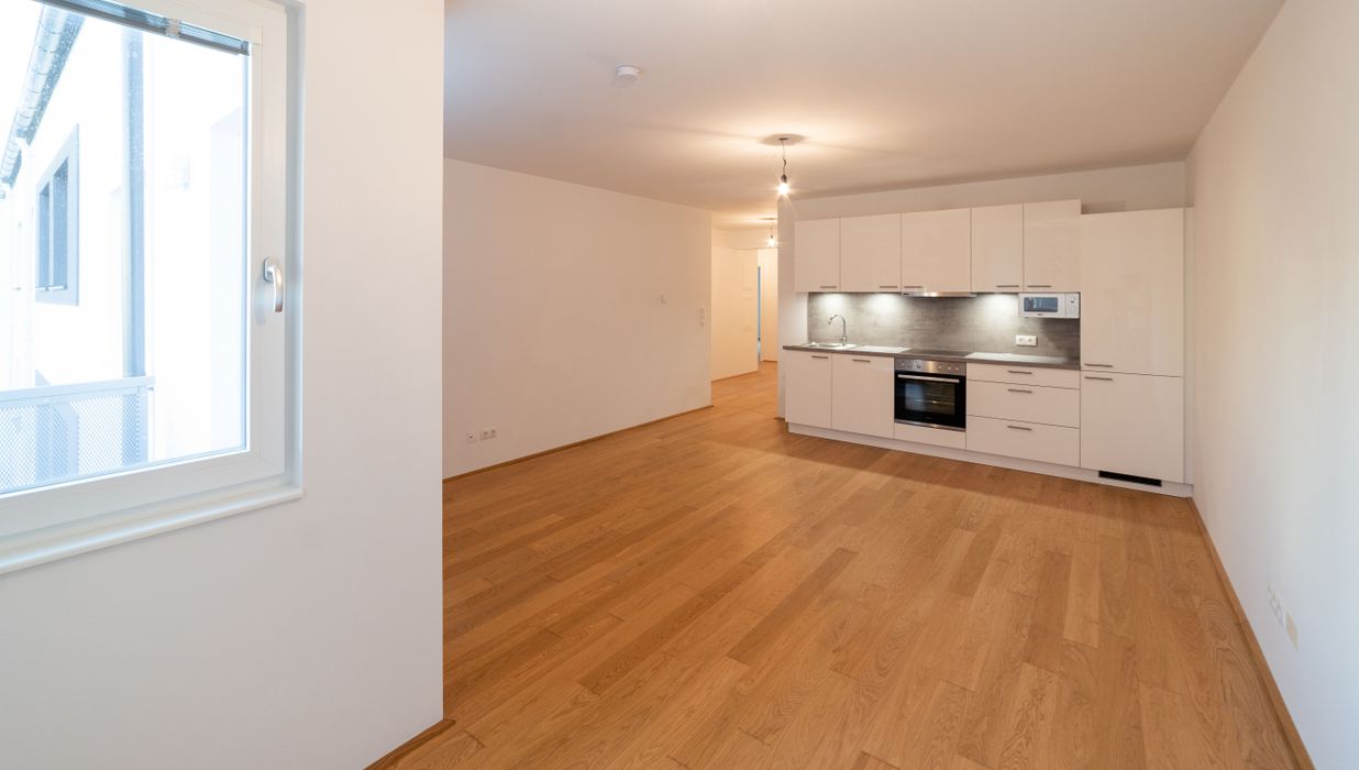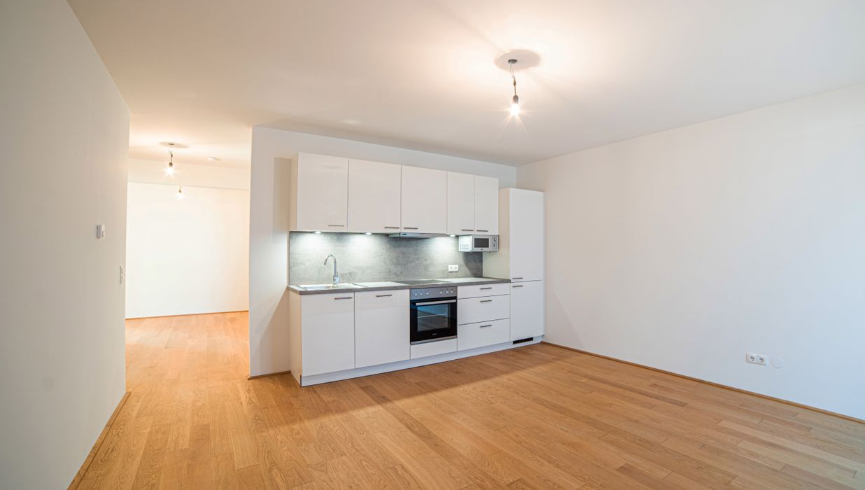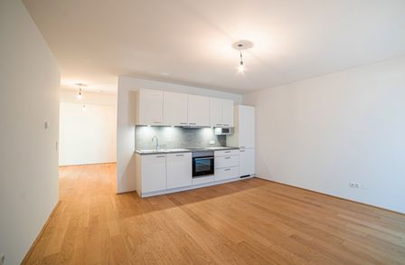 Diese gut aufgeteilte 2- Zimmerwohnung gliedert sich in eine großzügige Wohnküche mit direkten Zugang auf die 5,56 m² große Terrasse, ein getrennt begehbares Schlafzimmer, ein Bad mit Dusche und Waschmaschinenanschluss, sowie eine getrennte Toilette und einen kleinen Vorraum.