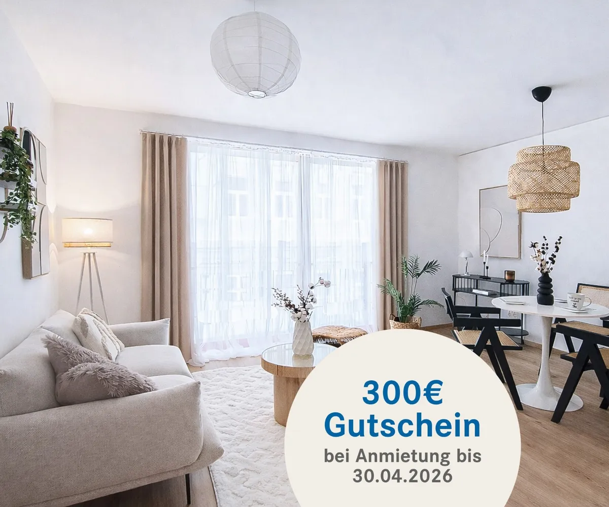 Der 300 € INTERSPAR-Gutschein wird bei Abschluss eines Mietvertrags mit Mietbeginn zum 01.07.2026 gewährt.