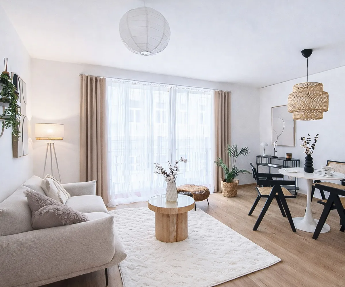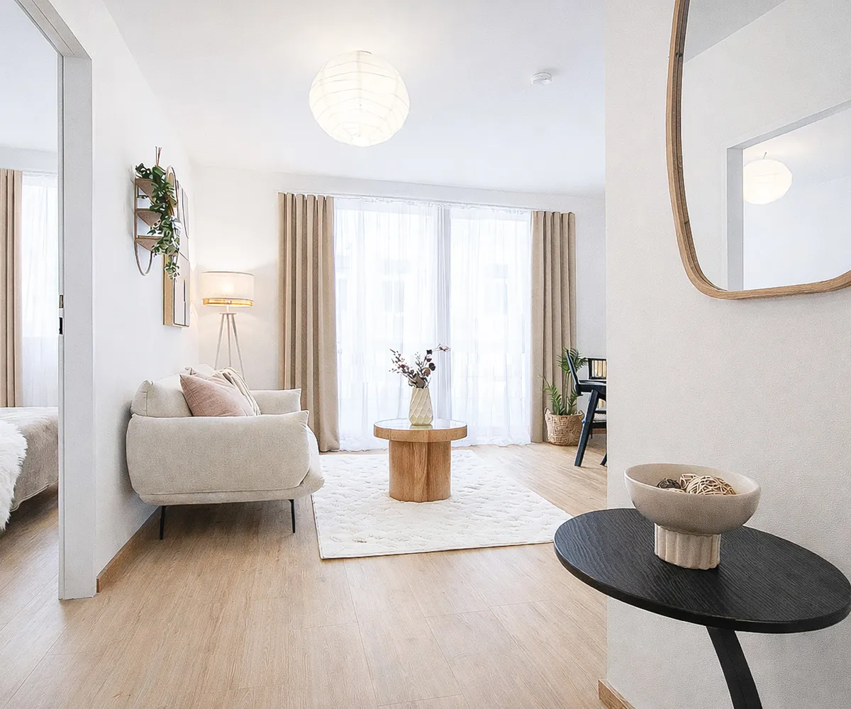 Das Projekt umfasst 61 hochwertige Mietwohnungen sowie ein e Atelier- bzw. Büroeinheit im Hofhaus. Die überwiegend 1,5-, 2- sowie 3-Zimmer-Wohnungen mit Wohnflächen von ca. 30 bis 80 m² überzeugen durch durchdachte, kompakte Grundrisse, helle Räume und eine hochwertige Ausstattung. Großzügige bodentiefe Fenster, klare architektonische Linien und teilweise private Freiflächen wie Balkone, Loggien oder Terrassen schaffen ein angenehmes, urbanes Wohnambiente. Ergänzt wird das Angebot durch ausgewählte Dach-Maisonetten , die ein besonders exklusives Wohngefühl bieten.