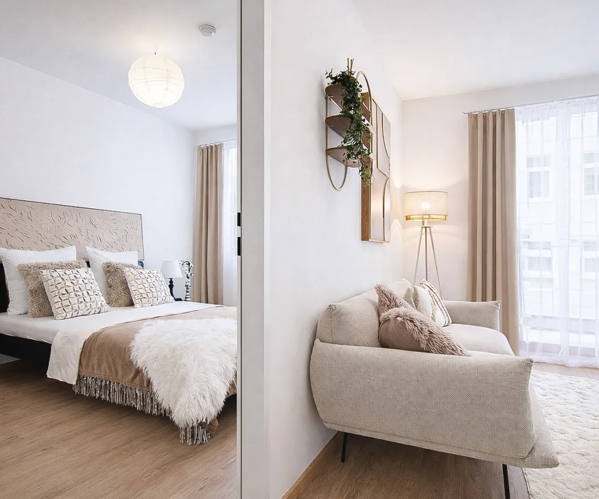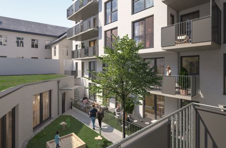 Das Projekt umfasst 61 hochwertige Mietwohnungen sowie ein e Atelier- bzw. Büroeinheit im Hofhaus. Die überwiegend 1,5-, 2- sowie 3-Zimmer-Wohnungen mit Wohnflächen von ca. 30 bis 80 m² überzeugen durch durchdachte, kompakte Grundrisse, helle Räume und eine hochwertige Ausstattung. Großzügige bodentiefe Fenster, klare architektonische Linien und teilweise private Freiflächen wie Balkone, Loggien oder Terrassen schaffen ein angenehmes, urbanes Wohnambiente. Ergänzt wird das Angebot durch ausgewählte Dach-Maisonetten , die ein besonders exklusives Wohngefühl bieten.