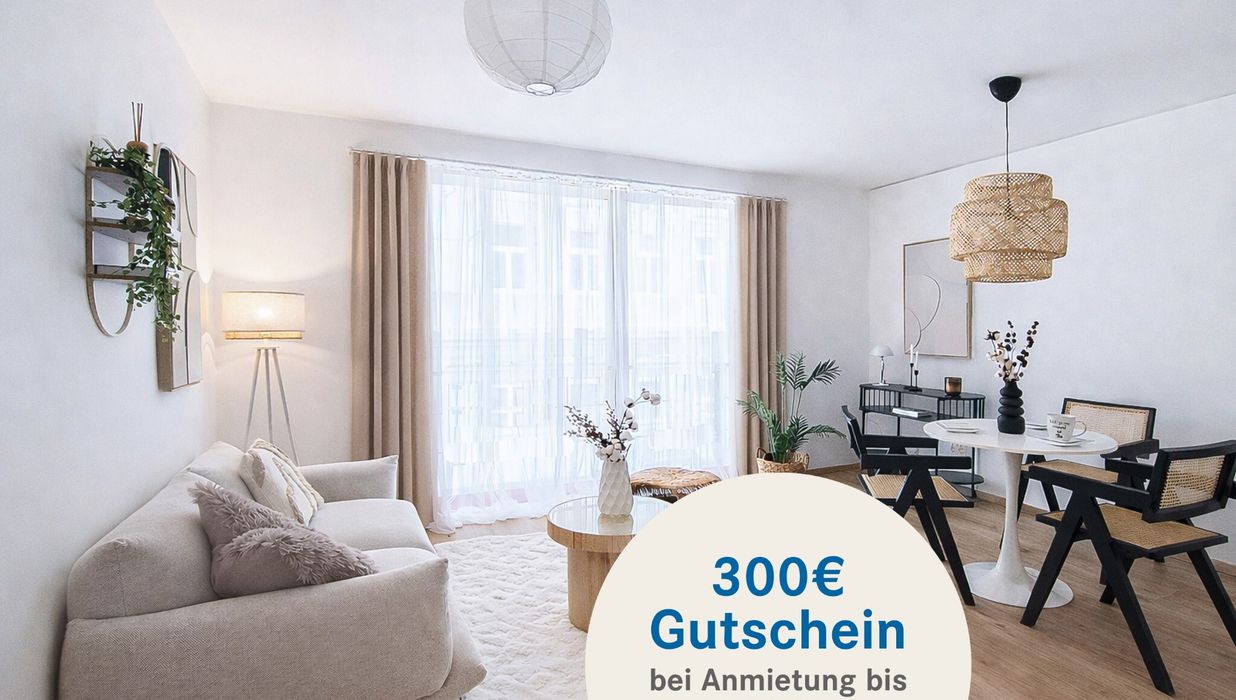 Der 300 € INTERSPAR-Gutschein wird bei Abschluss eines Mietvertrags mit Mietbeginn zum 01.07.2026 gewährt.