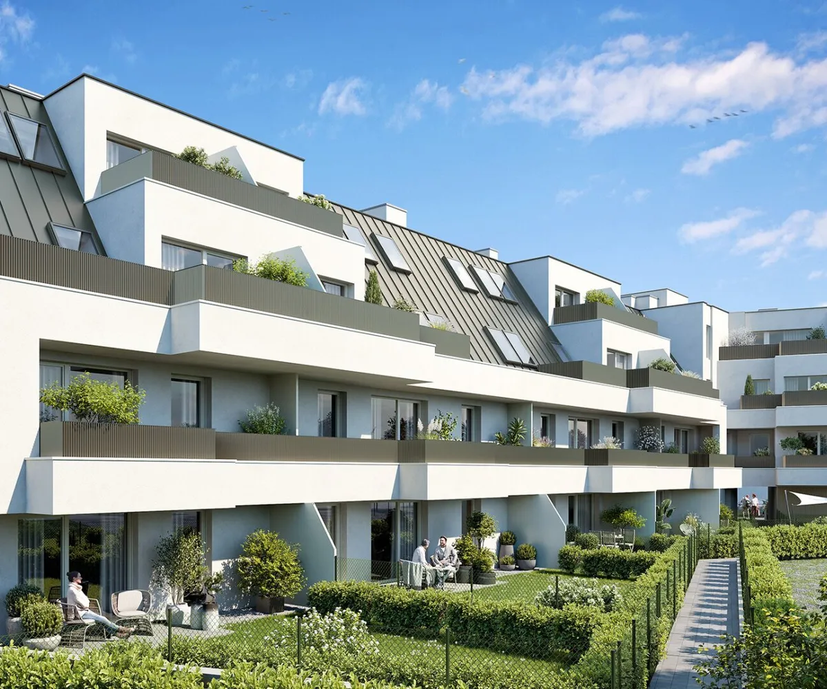 Die Wohnhausanlage besteht aus einem eleganten L-Förmigen Baukörper mit insgesamt 39 Wohnungen, allseitig ausgerichtet. Die Erschließung erfolgt über ein Stiegenhaus mit einem Aufzug, welches alle Geschosse umfasst. In der Tiefgarage sind insgesamt 19 PKW-Stellplätze untergebracht. Technik- und Einlagerungsräume sowie der Fahrradabstellraum befinden sich im Kellergeschoss. Kinderwagenabstell- und der Müllraum sind im Erdgeschoss, in unmittelbarer Nähe zum Hauptzugang, situiert. Die Wohnungen verteilen sich auf Erdgeschoss bis 2. Dachgeschoss (teilweise mit Eigengarten, Terrasse, Balkon oder Loggia).