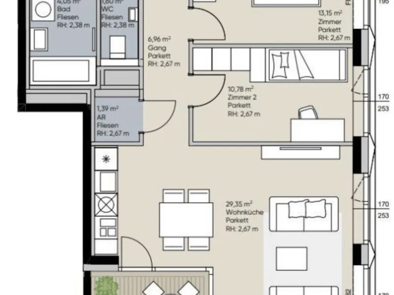 Weiters ist jede Wohnung bereits mit einer Küche samt aller Geräte ausgestattet.