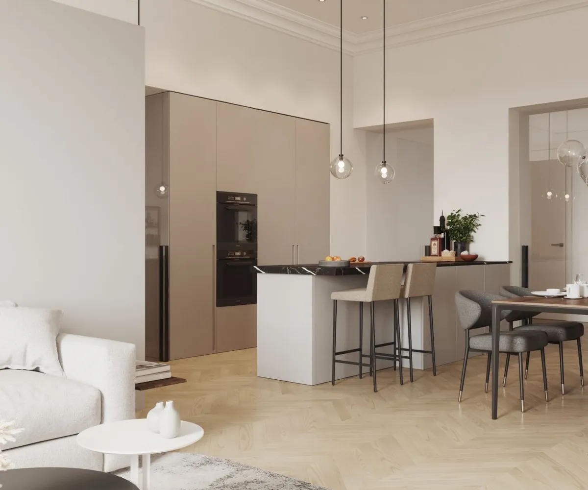 DAS ARTMANN vereint Funktionalität mit zeitloser Eleganz: Neben der hauseigenen Tiefgarage, zahlreichen Fahrradabstellplätzen im Innenhof und den Aufzügen, die die Regelgeschoße und zwei Dachgeschoße barrierefrei und komfortabel verbinden, überzeugen die Wohnungen darüber hinaus mit