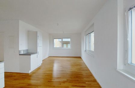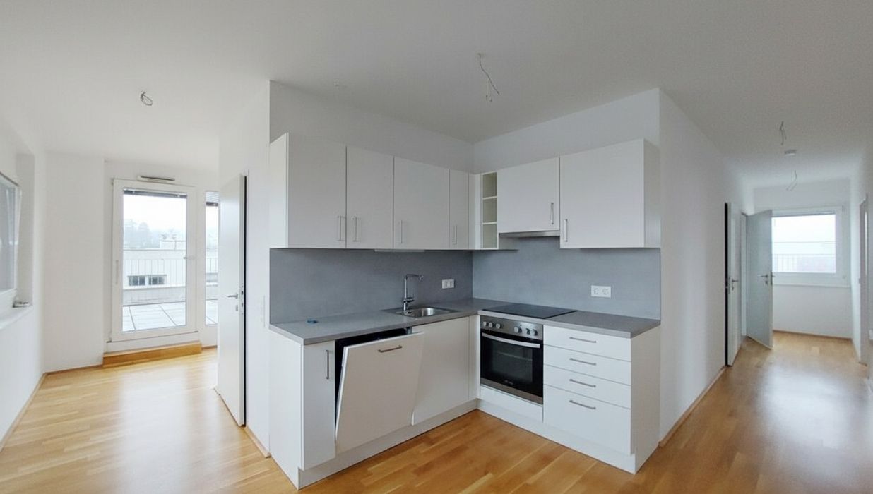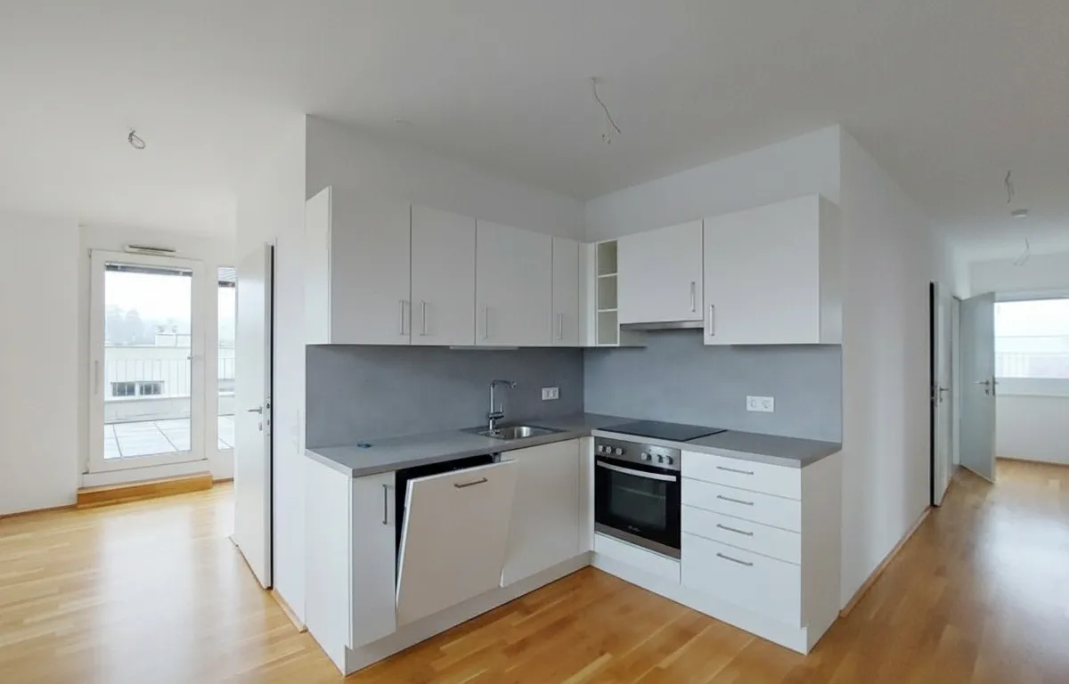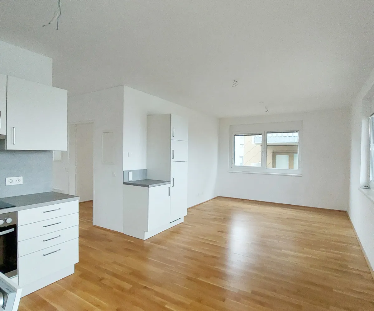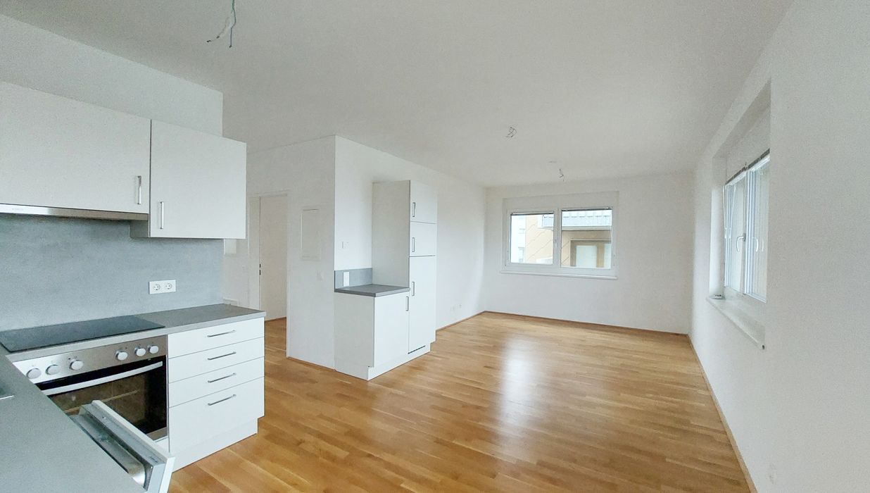 Die Wohnung selbst befindet sich in der 3. Etage und verfügt über ein helles Wohnzimmer mit Küche, zwei getrennt begehbare Schlafzimmer, ein Badezimmer mit Dusche und WC, einen Abstellraum sowie einen Vorraum. Die großzügige Terrasse rundet das Wohnerlebnis perfekt ab.