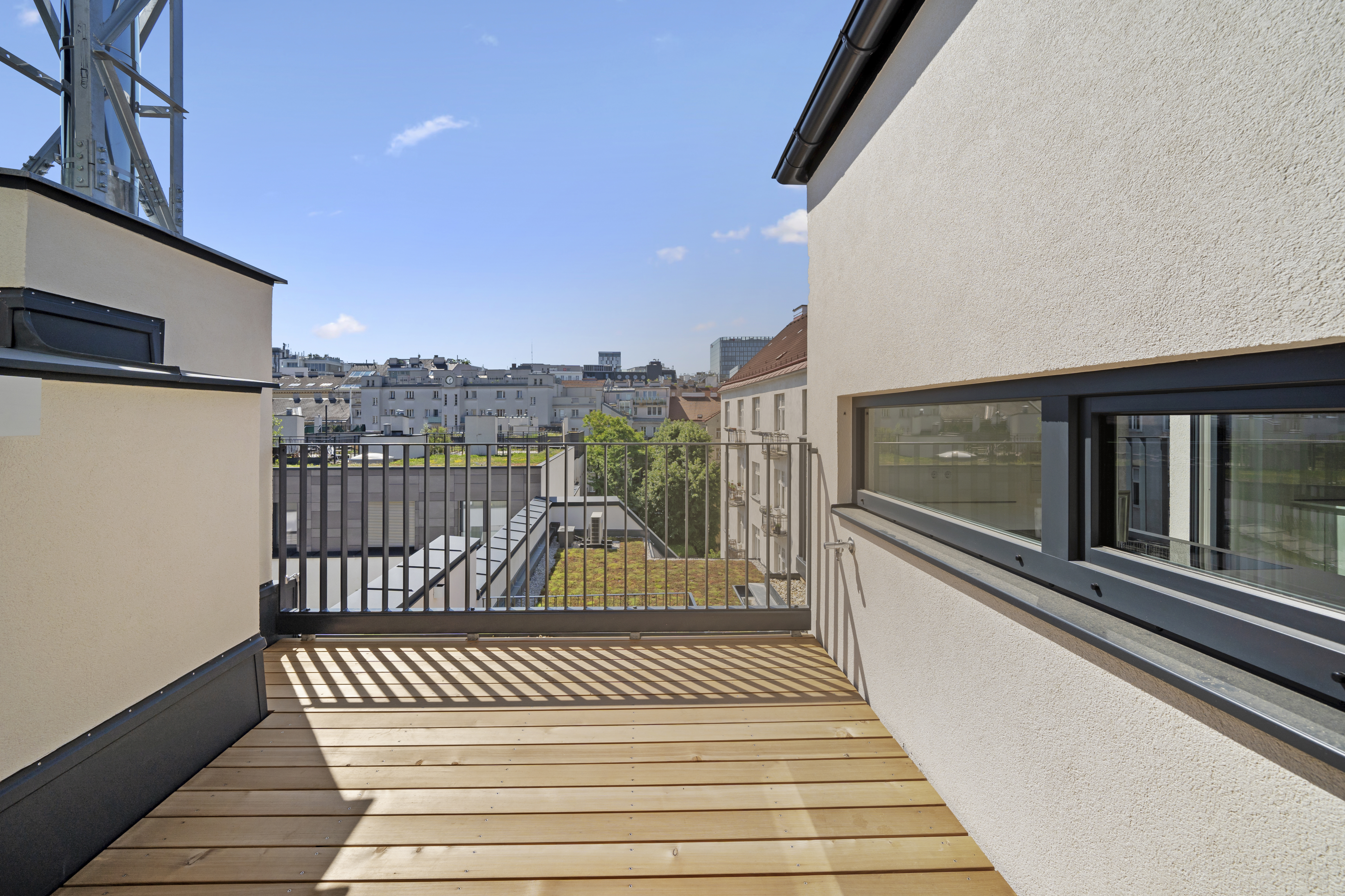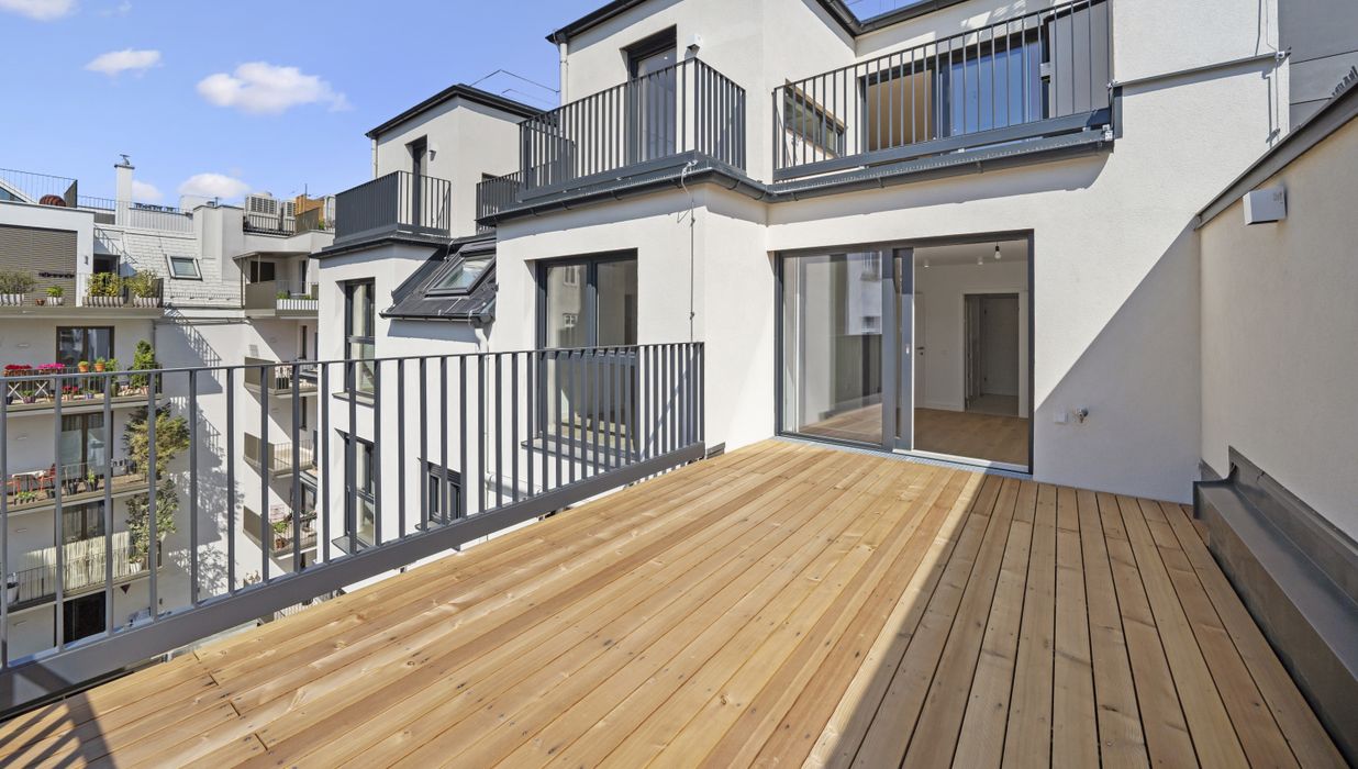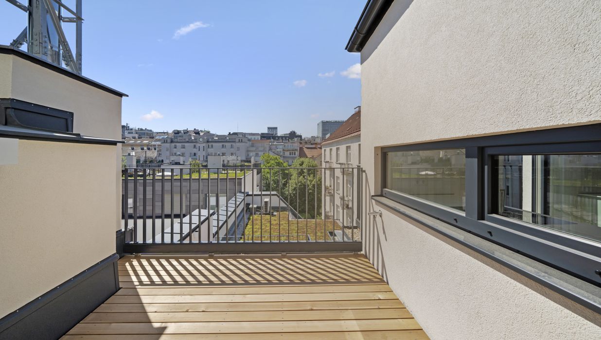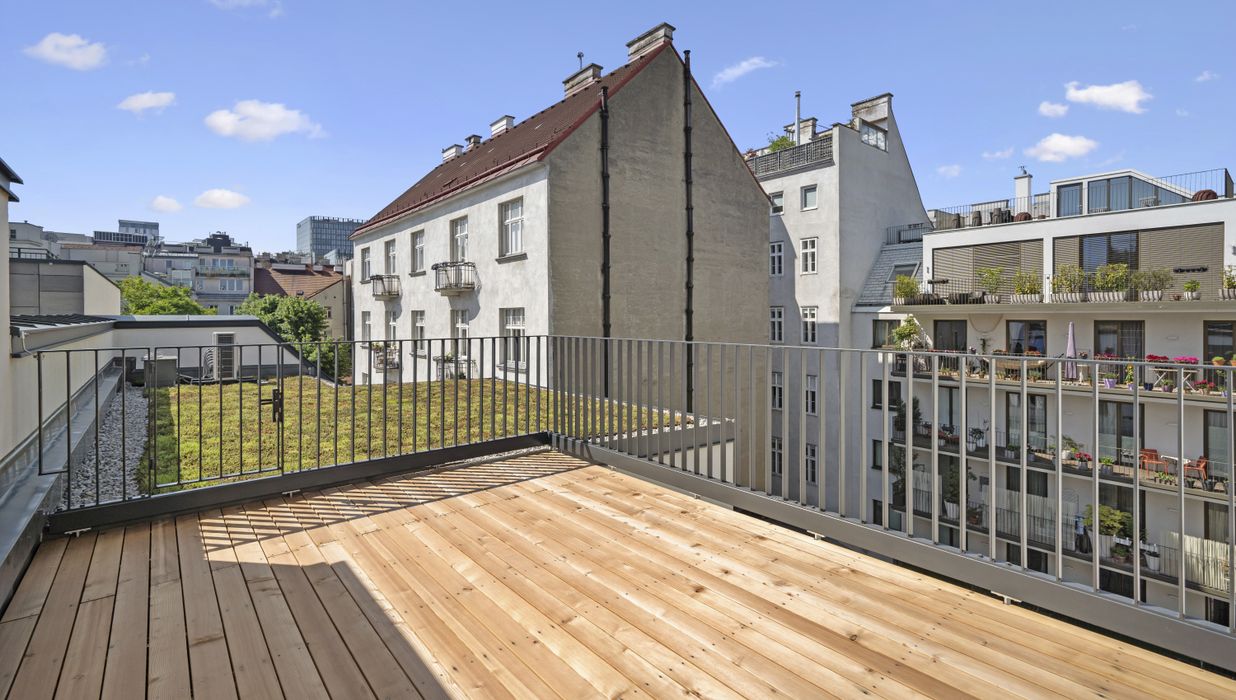 Zusätzlich stehen auf dieser Ebene ein weiteres WC sowie zwei weitere Terrassen zur Verfügung (ca. 7,70 m² und 3,58 m² ) – perfekt für Dinner im Freien, urbanes Garteln oder entspannte Abende mit Blick über die Dächer.