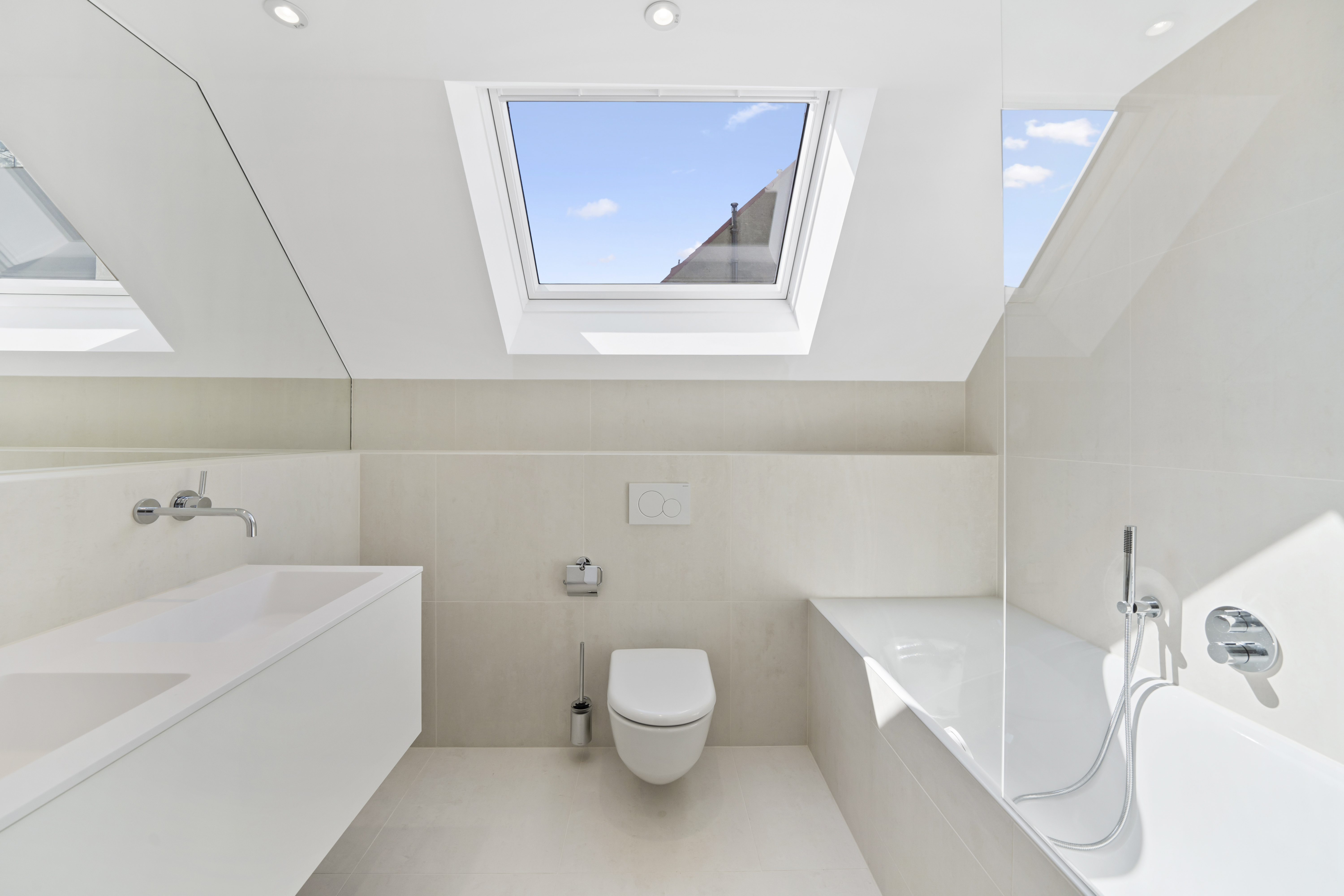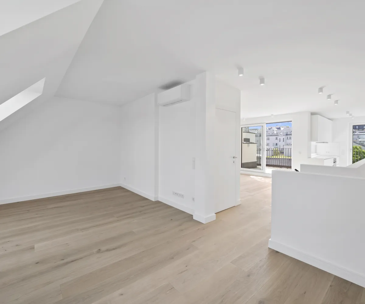 Im Dachgeschoss erwartet Sie das absolute Zentrum der Wohnung: eine großzügige Wohnküche mit ca. 56,41 m² – offen, lichtdurchflutet und repräsentativ. Hier entsteht genau das Wohngefühl, das man von einer modernen Dachgeschosswohnung erwartet: Raum, Weite, Atmosphäre.