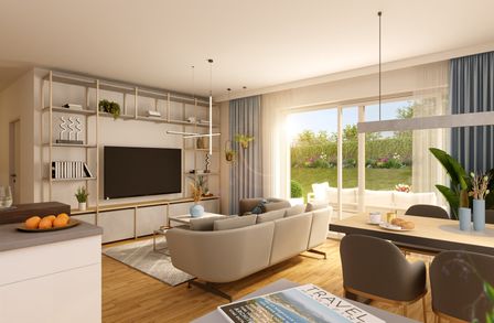Die Tops verfügen gartenseitig über bodentiefe Fenster und schöne Outdoor-Bereiche wie Gärten, Balkone und Terrassen