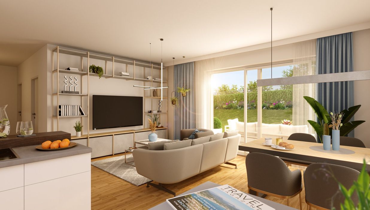 Die nachhaltig ausgestattete Wohnhausanlage wird mittels umweltfreundlichen Luft-Wasser-Wärmepumpe in Kombination mit einer Photovoltaikanlage am Dach mit Wärme versorgt und für die Energiewende fit gemacht. Alle vertikalen Fenster, Terrassen- und Balkontüren werden mit 3-Scheiben-Isolierverglasung ausgestattet. Zur Verschattung erhalten Fenster und Fenstertüren außenliegende, elektrisch bedienbare Raffstores.