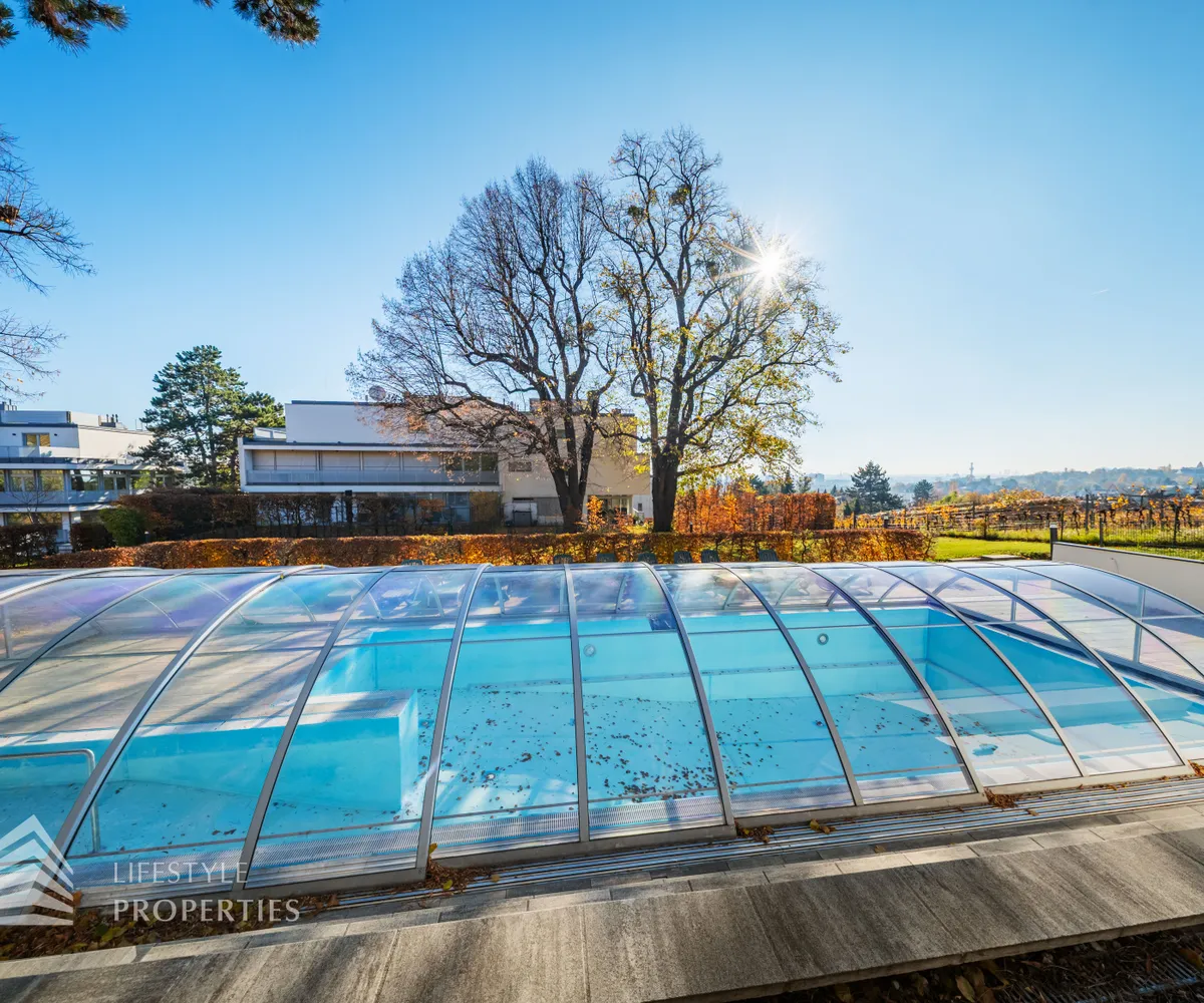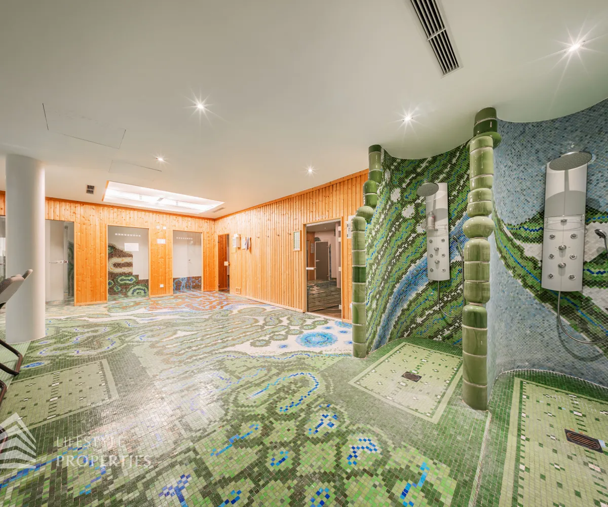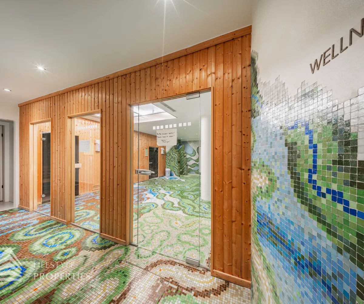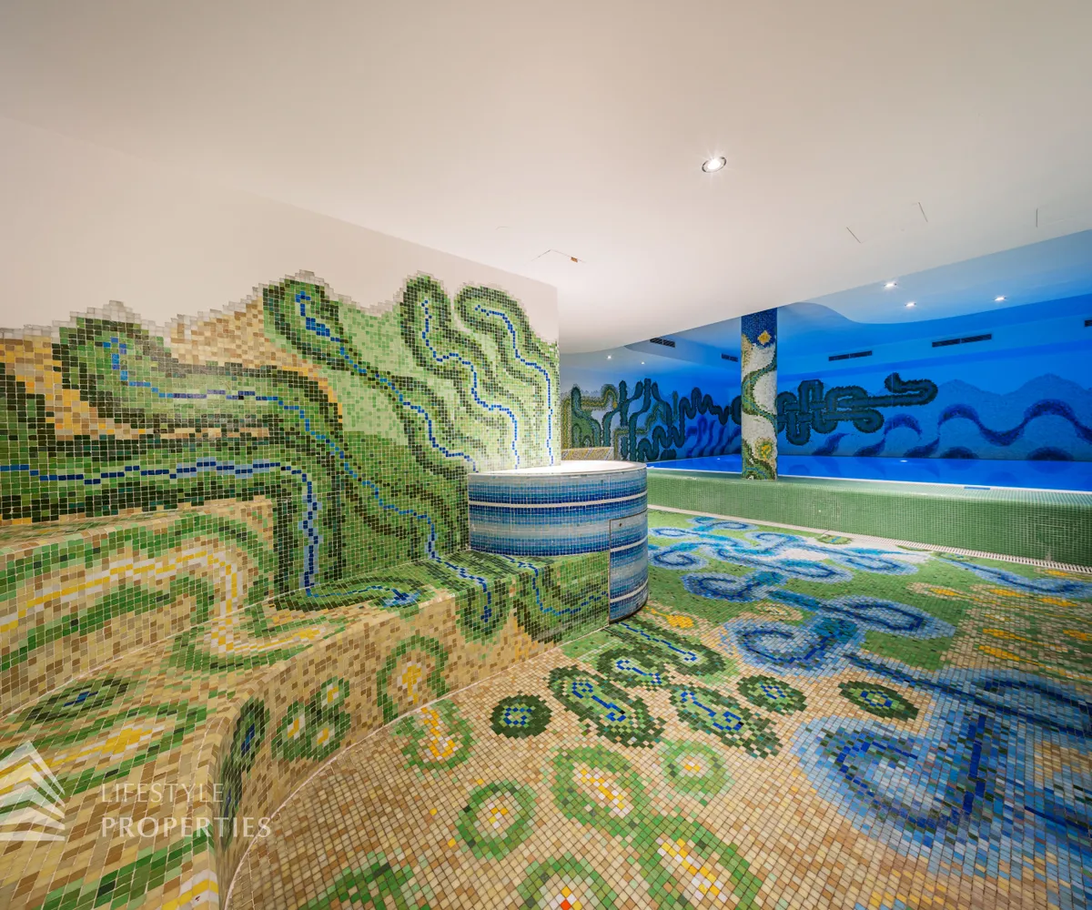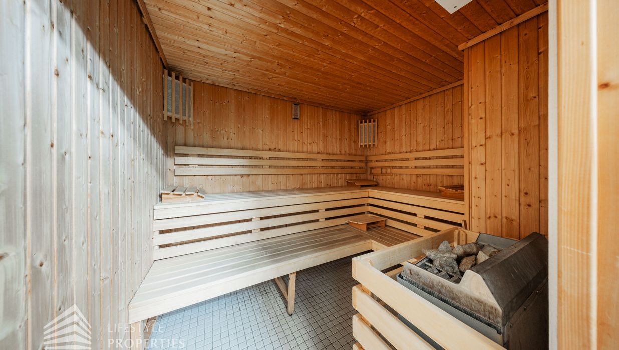 Das Wohnhaus verfügt über einen Innen- sowie Außenpool. Ergänzt wird das Angebot durch eine Sauna mit integrierter Dusche und WC. Alle Einrichtungen stehen das ganze Jahr über zur Verfügung. Ein weiteres Highlight ist der Weinkeller, der nicht nur über individuelle Weinabteile für jede Wohnung verfügt, sondern auch ideal für Feierlichkeiten genutzt werden kann. Zudem gehört ein Kamin zur Ausstattung jeder Wohnung.
