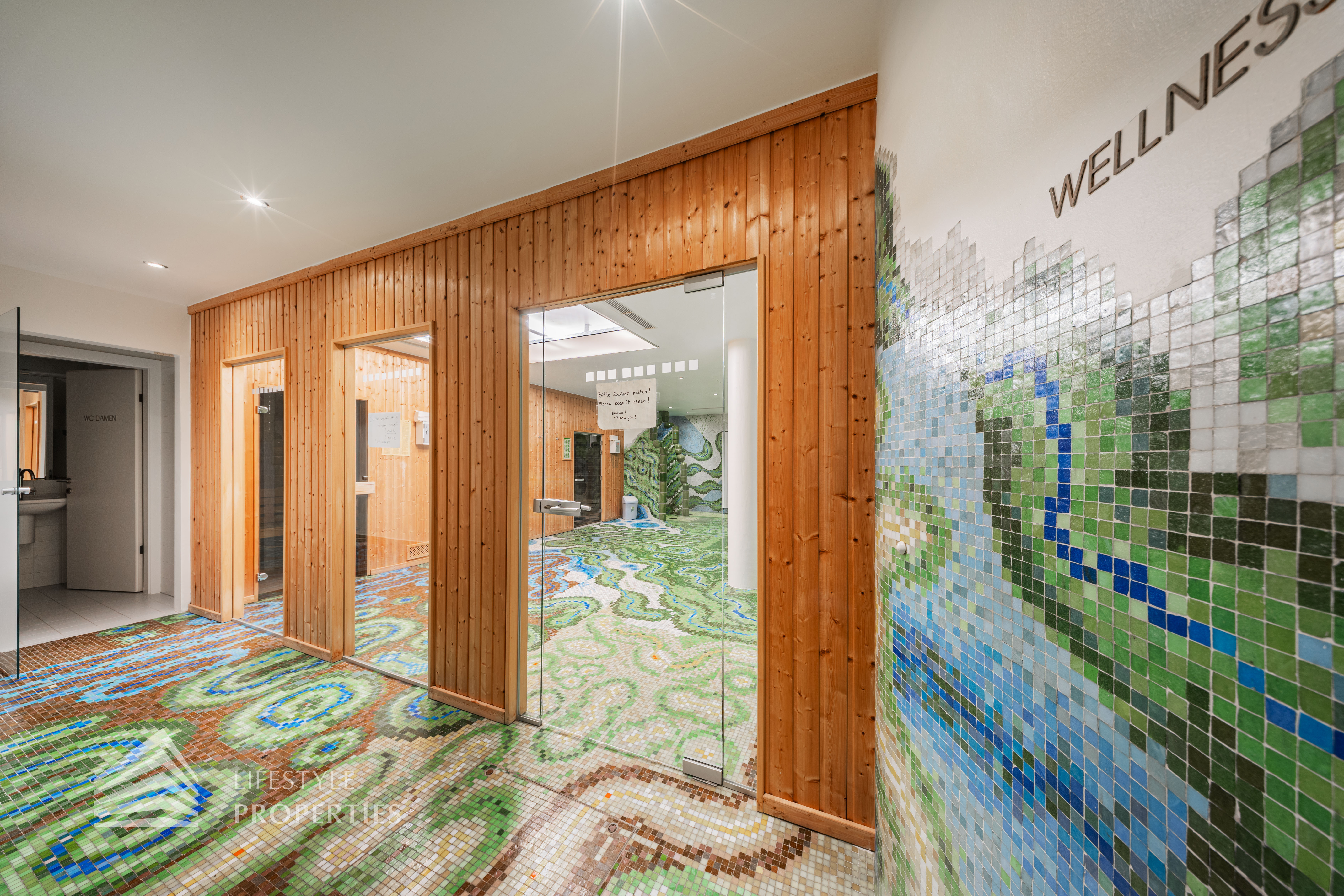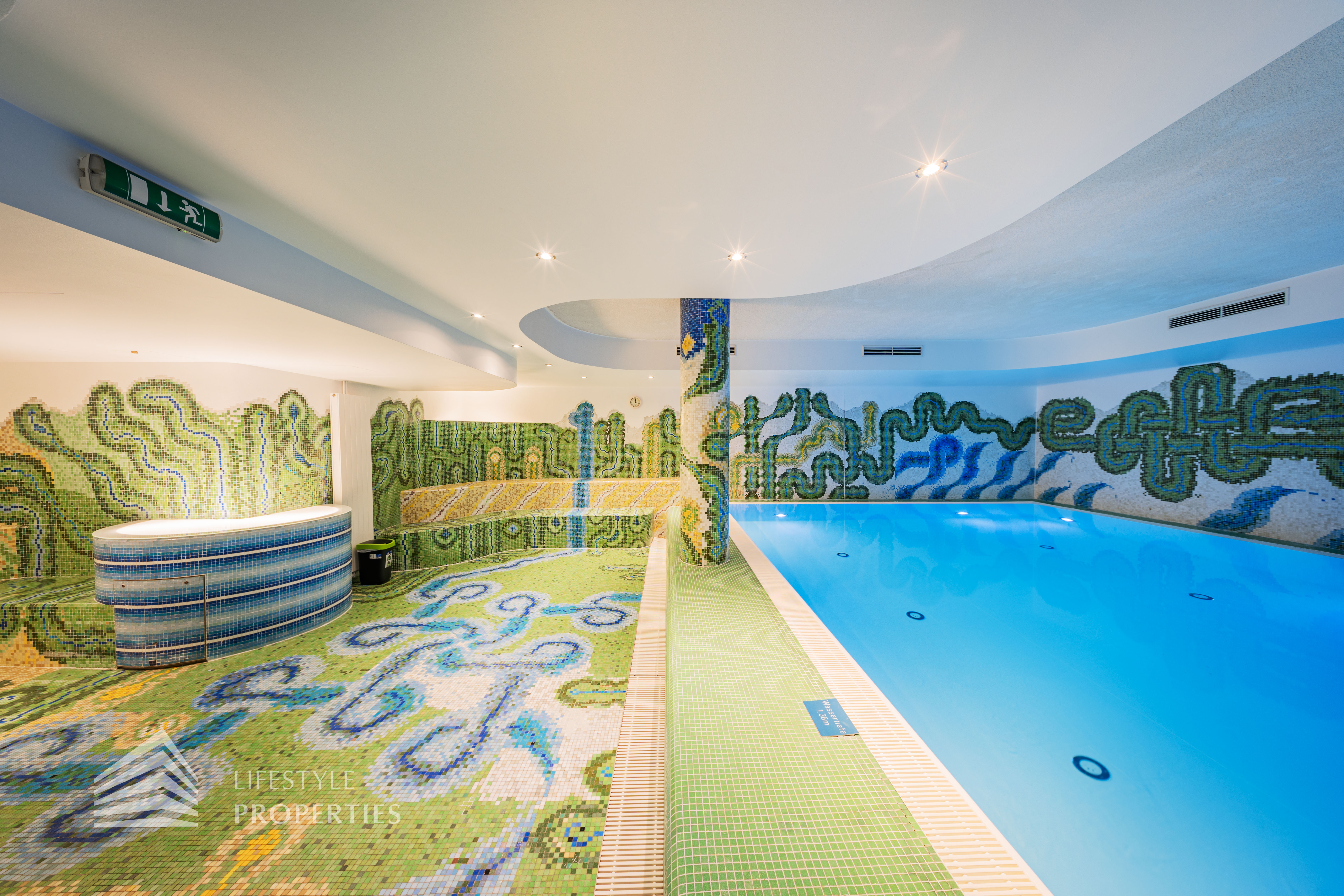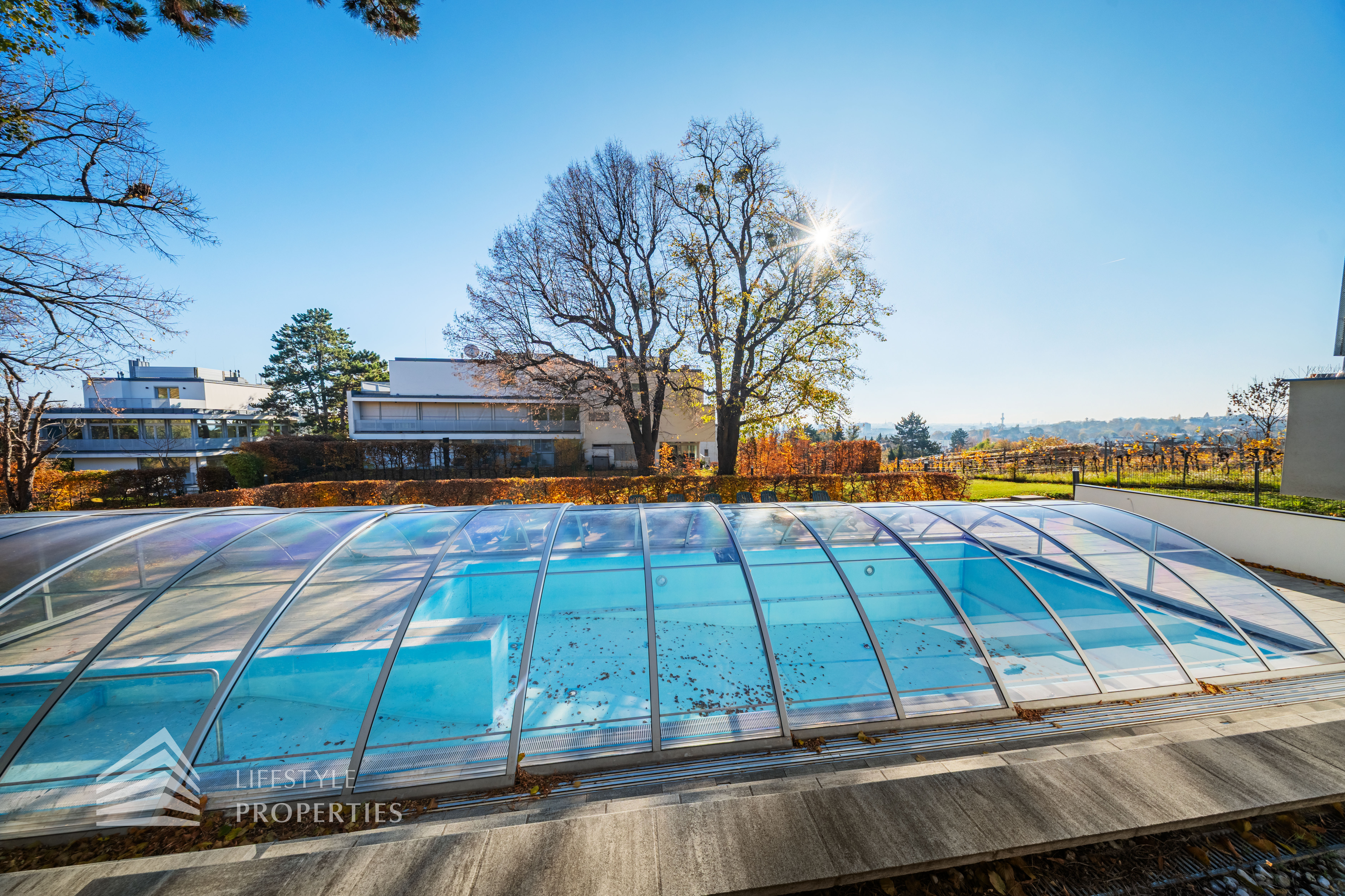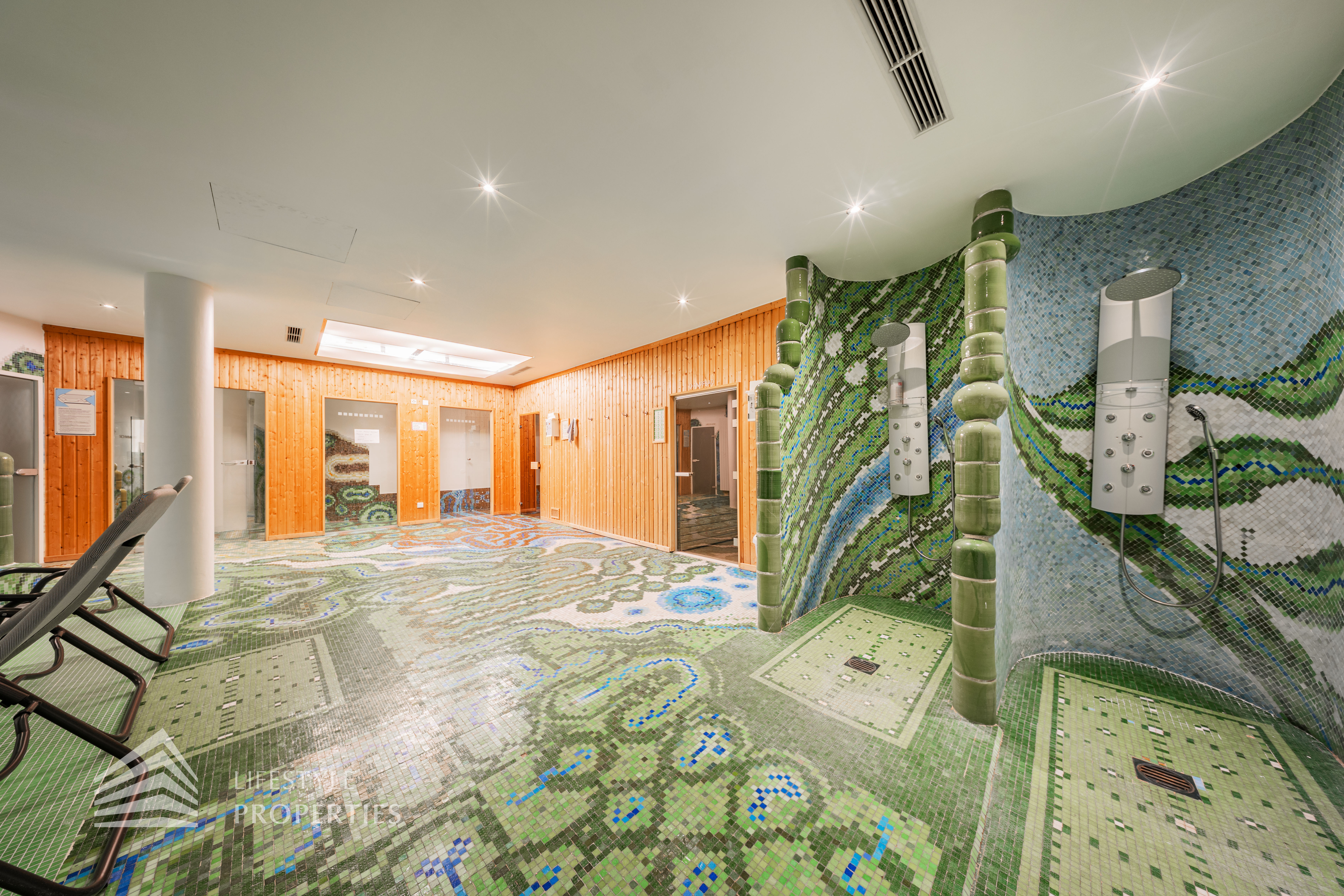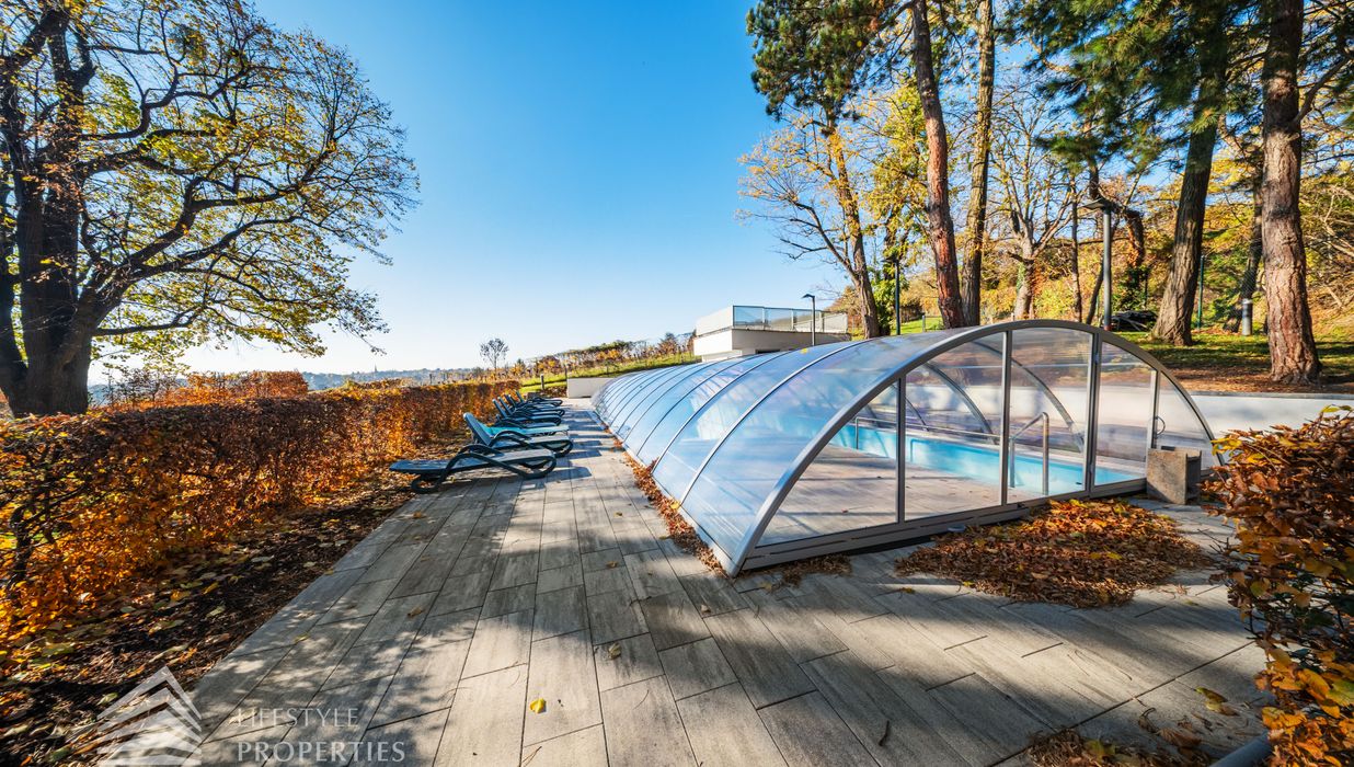 Das Wohnhaus verfügt über einen Innen- sowie Außenpool. Ergänzt wird das Angebot durch eine Sauna mit integrierter Dusche und WC. Alle Einrichtungen stehen das ganze Jahr über zur Verfügung. Ein weiteres Highlight ist der Weinkeller, der nicht nur über individuelle Weinabteile für jede Wohnung verfügt, sondern auch ideal für Feierlichkeiten genutzt werden kann. Zudem gehört ein Kamin zur Ausstattung jeder Wohnung.