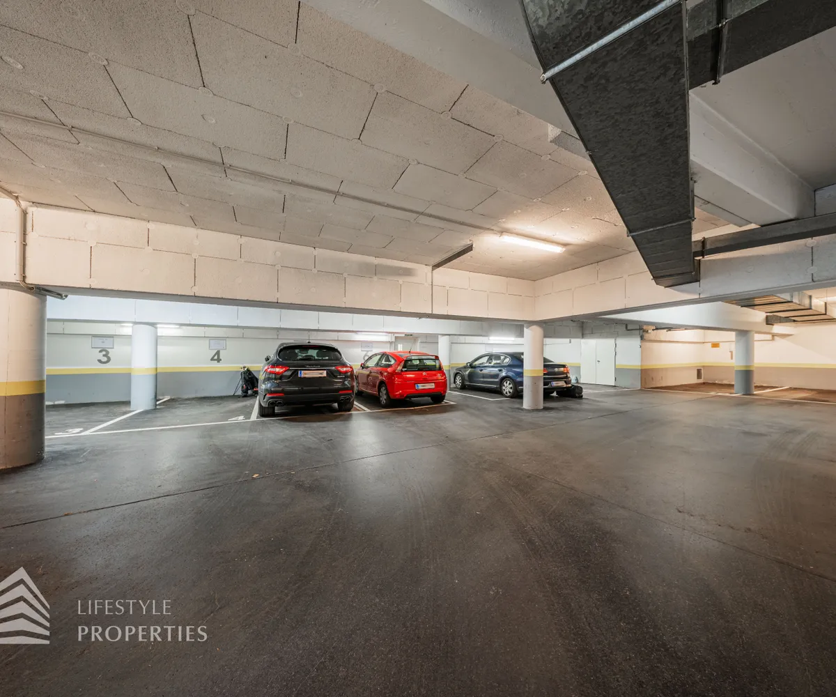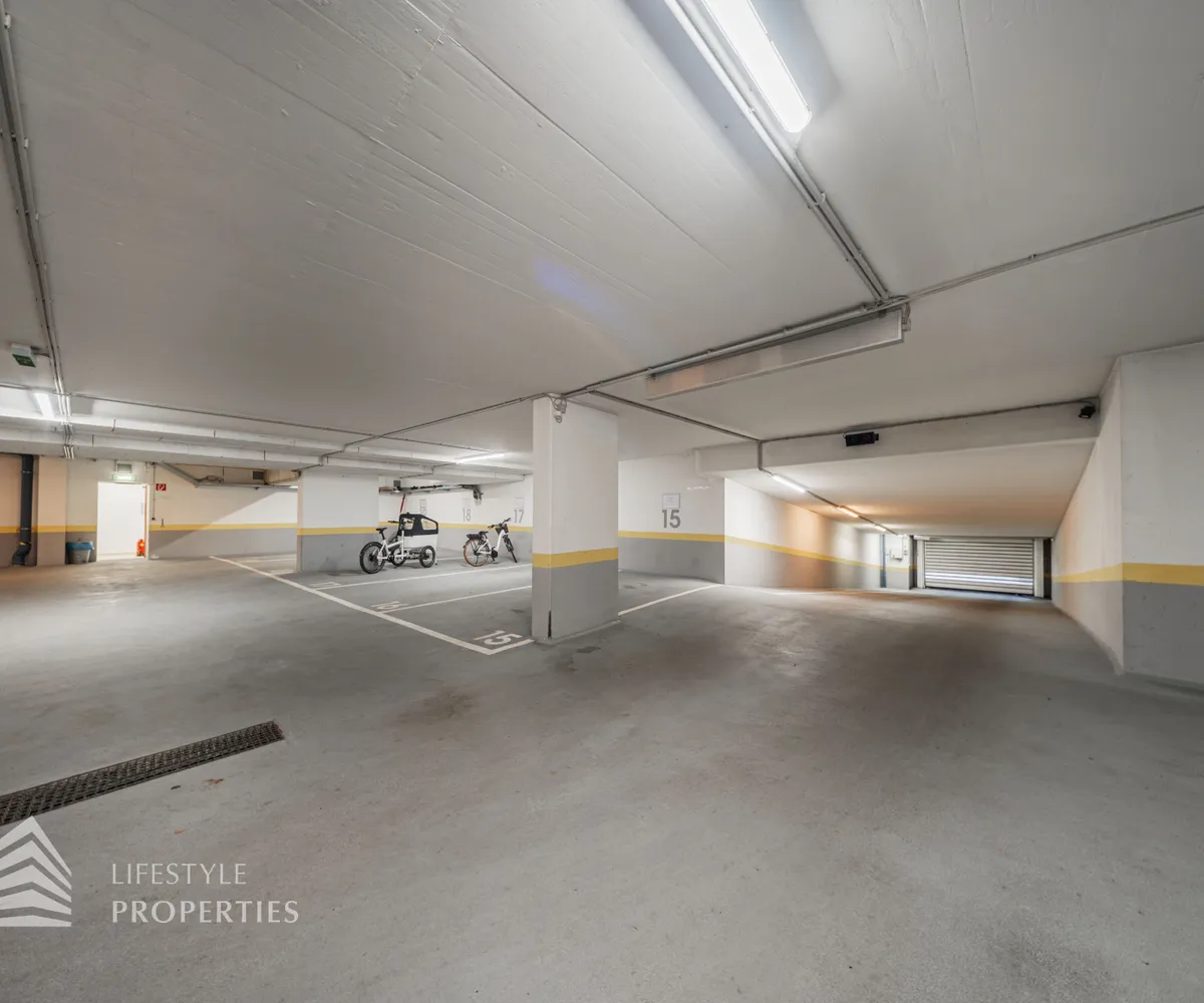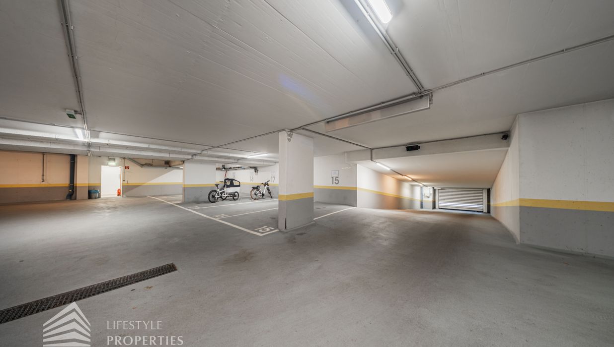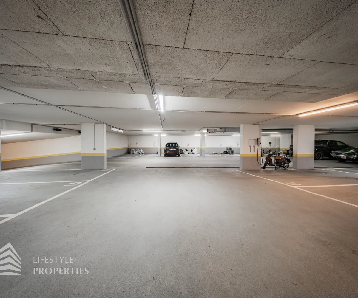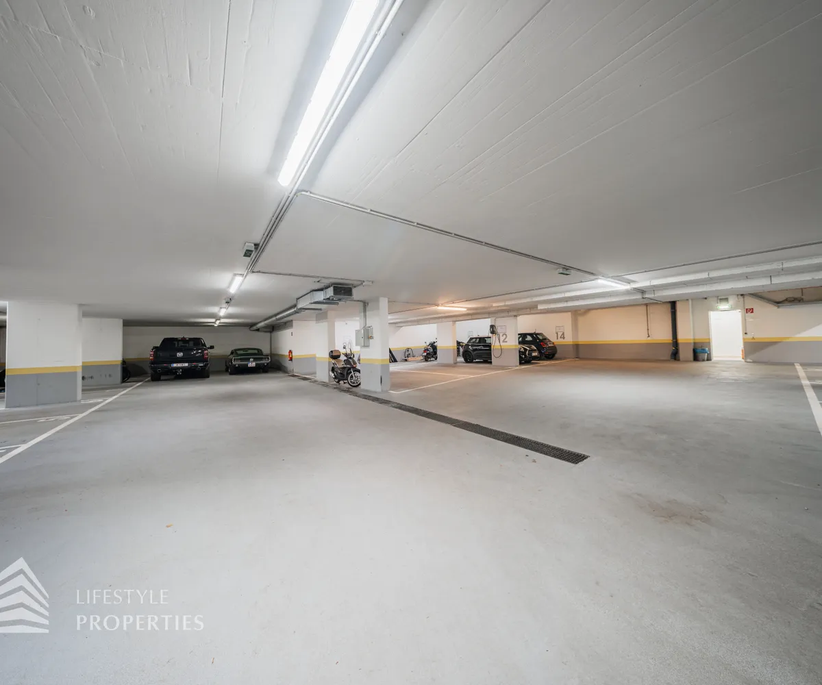 Für die Wohnungen stehen in den Tiefgaragen Parkplätze zur Verfügung zum Preis von €180,- brutto monatlich.